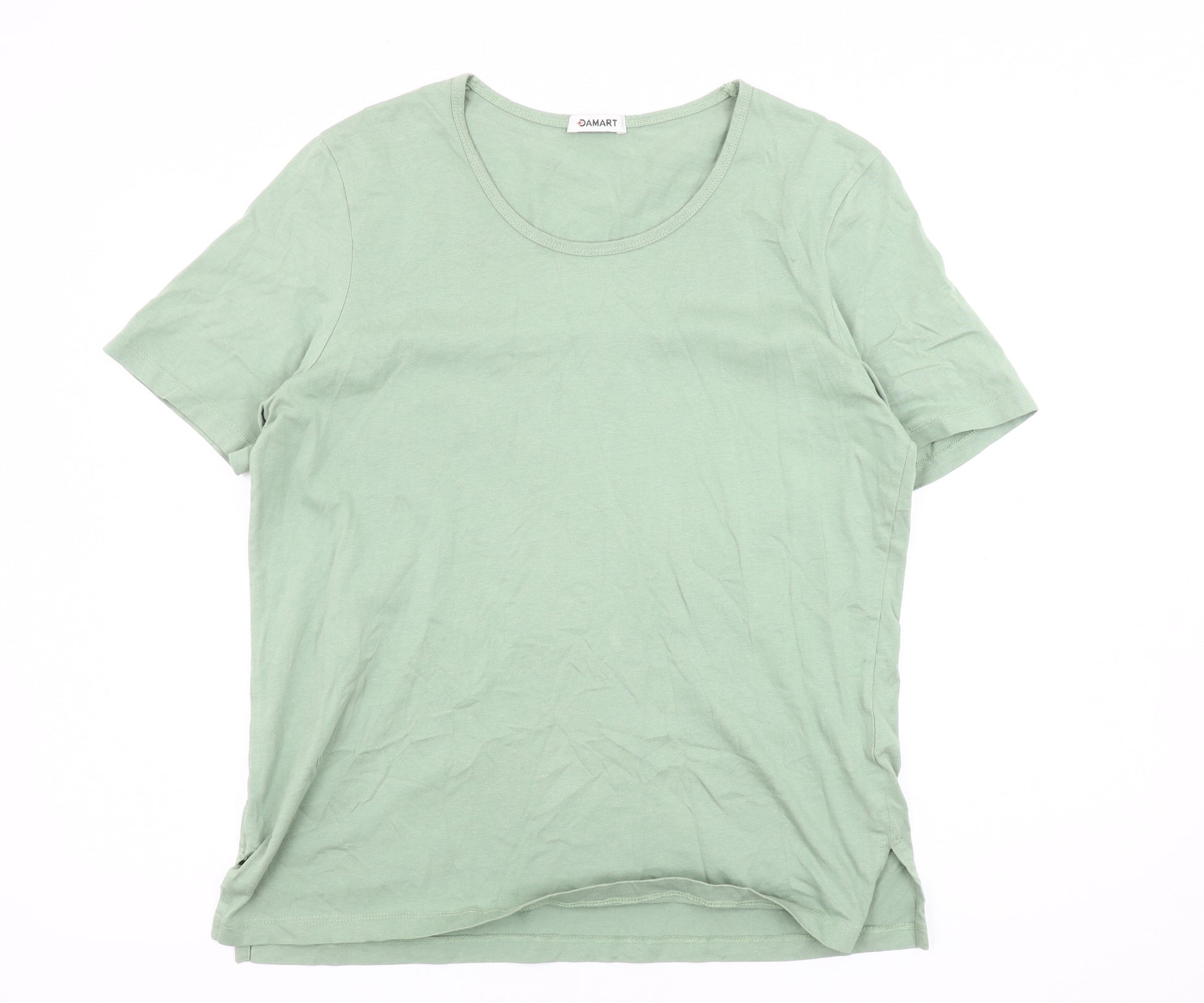Elevate your everyday look with this timeless Damart Women's Basic T-Shirt in a soft green hue. Perfectly crafted for casual outings, this T-Shirt is designed to deliver both comfort and style. Made from 100% cotton, it offers a soft and breathable feel that will keep you comfortable throughout the day. The jersey fabric type adds an extra layer of luxury, ensuring a snug fit that drapes beautifully over your silhouette. A classic round neck and short sleeves define its basic yet sophisticated style, making it a versatile addition to your wardrobe. Whether paired with jeans for a relaxed weekend look or layered under a blazer for a more polished ensemble, this solid-patterned T-Shirt is a must-have staple for any fashion-conscious individual. Although pre-owned, it remains in excellent condition, with slight wear that barely impacts its overall appearance. This piece exemplifies casual elegance and is ideal for those all-season outings where comfort is key. Its pullover closure ensures easy wear, making it a convenient choice for your day-to-day engagements. Machine washable for effortless care, this Damart T-Shirt is an investment in both style and utility. Don't miss the chance to turn heads with this simple yet striking addition to your casual collection.