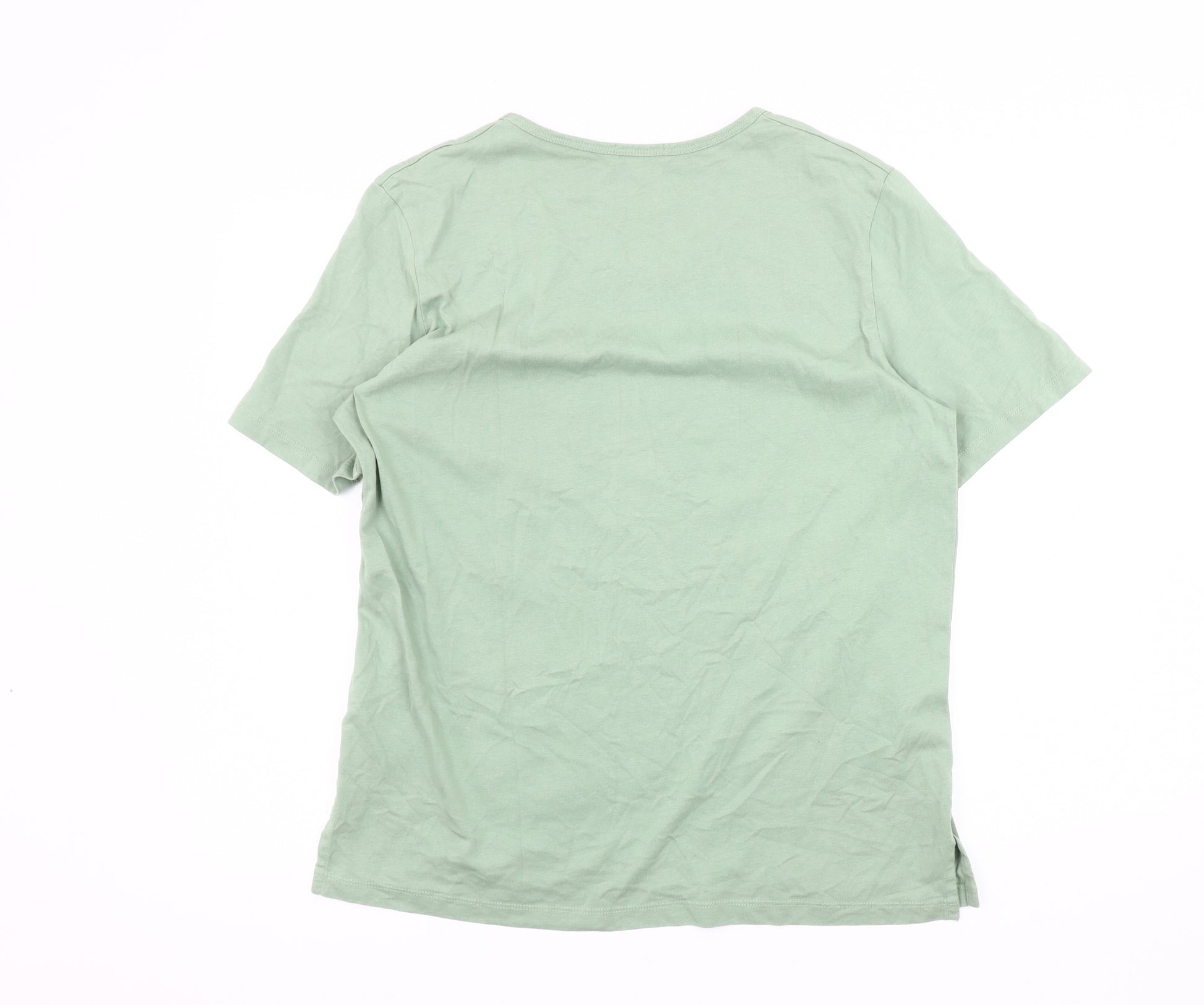 Women's Green Basic T-Shirt, Short Sleeve, Casual 14-16