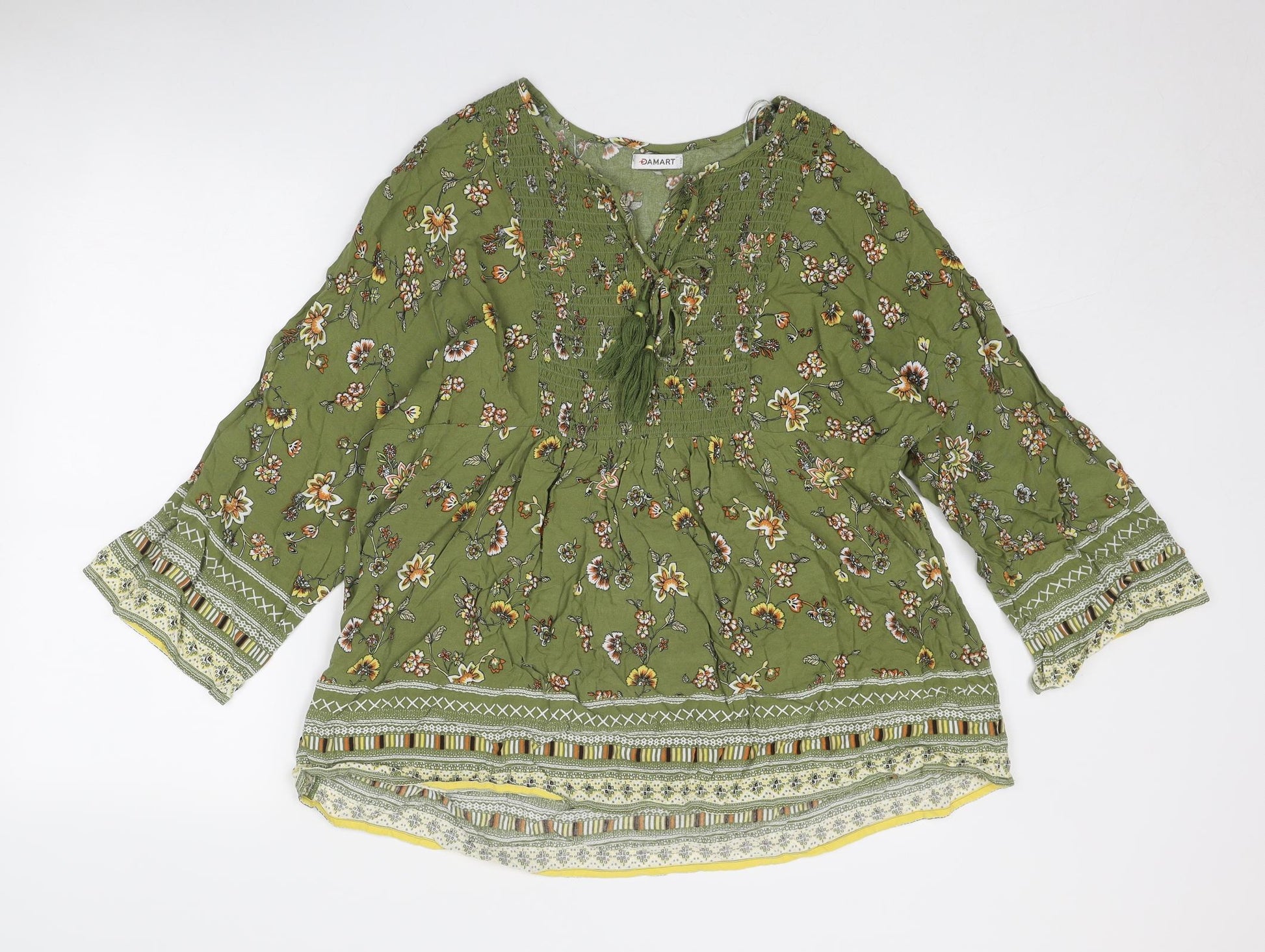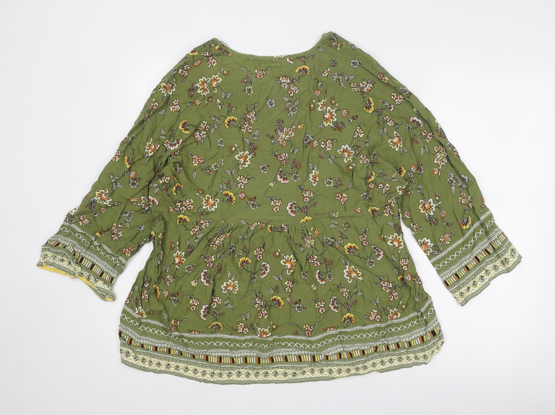 Womens Green Geometric Viscose Basic Blouse Size 16 V-Neck