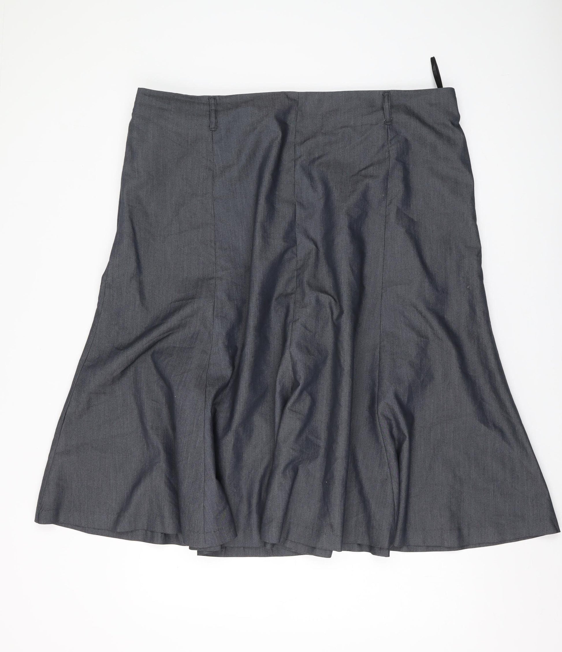 This elegant Damart Women’s A-Line skirt, tailored in a versatile grey shade, is a timeless piece for your wardrobe. Crafted with a luxurious blend of cotton, polyester, and elastane, it assures comfort and flexibility. The knee-length design offers a classic silhouette, perfect for both business and casual occasions. Featuring a practical elastic waist and a secure zip closure, it ensures a perfect fit. The skirt is fully lined for a refined finish, ideal for the autumn, winter, and spring seasons. Despite its excellent condition, the skirt has been pre-loved, offering unbeatable quality and style. Elevate your outfit with this grey A-Line skirt that seamlessly blends fashion with function, making it an essential staple in every woman's collection.