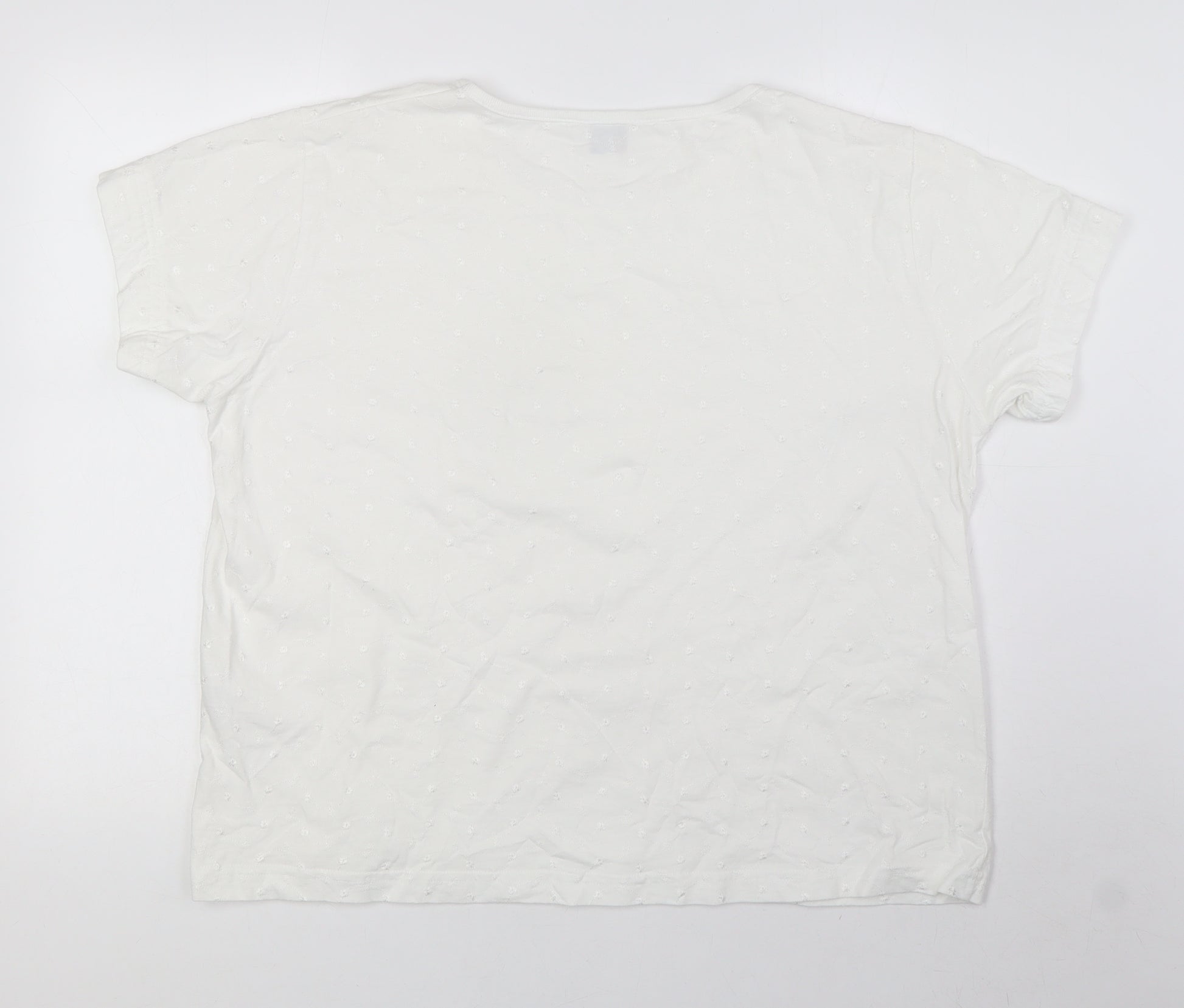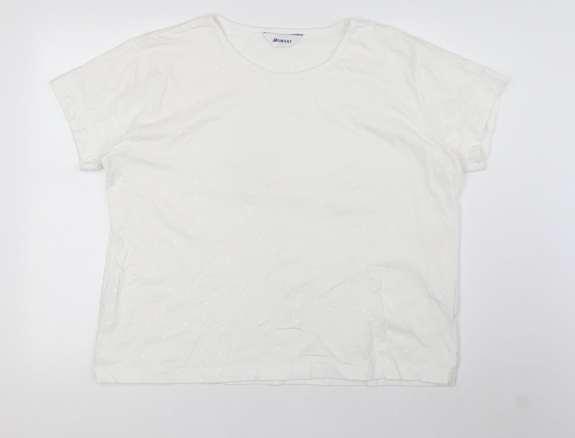 Womens Ivory Cotton Basic T-Shirt Size 20 Crew Neck - Embr