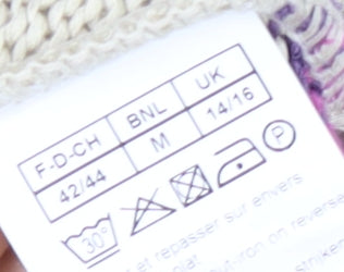 Step into elegance with this Damart Women's Cardigan, designed to bring vibrancy and comfort to your everyday wear. Featuring a striking multicoloured geometric pattern, this open-knit piece is perfect for adding a pop of colour to any ensemble. Crafted from 100% acrylic, the cardigan promises a soft and lightweight feel, ideal for layering over your favourite tops. Its medium (M) size ensures a comfortable fit for standard UK sizes 14/16. The cardigan comes with 3/4 sleeves, providing ease and versatility through various seasons, though it shines best as a casually stylish option for spring or autumn outings. A button accent adds a charmingly simple touch, complementing the cardigan's overall relaxed vibe. Whether you're heading out for a casual day with friends or looking for something cosy to wear at home, this Damart cardigan is sure to become a wardrobe staple. Perfect for those who appreciate a blend of style and practicality, it invites you to embrace comfort without sacrificing aesthetics. In excellent condition, this cardigan shows only light signs of wear, lacking original sales tags. A lovely knit fabric lends sophistication to any outfit, making it a versatile addition suitable for different casual occasions. Don’t miss the opportunity to own this delightful piece; it’s your go-to statement item for effortless styling.