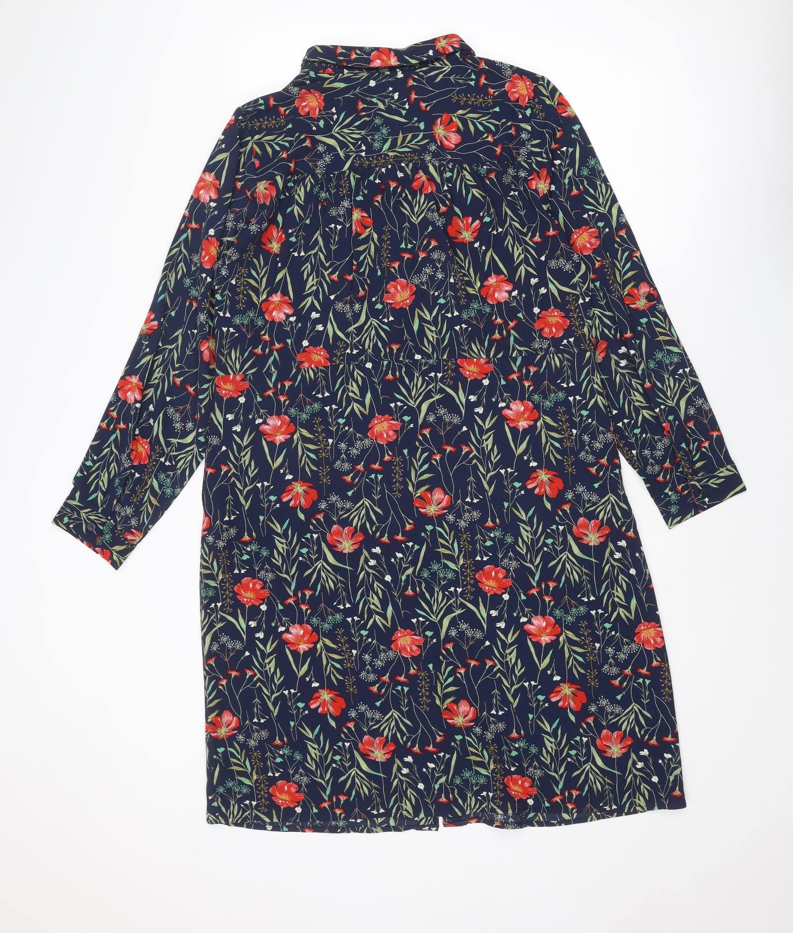 Womens Multicoloured Floral Polyester Shirt Dress Size 16 Collared Button
