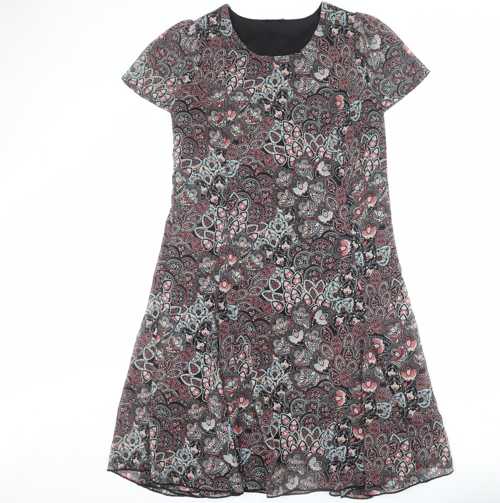 Womens Multicoloured Geometric Polyester Trapeze & Swing Size 16 Round Neck Zip