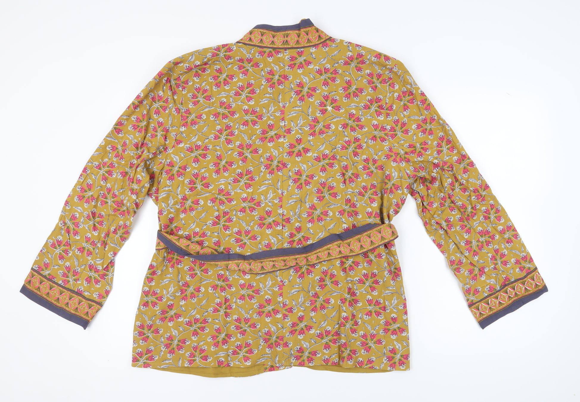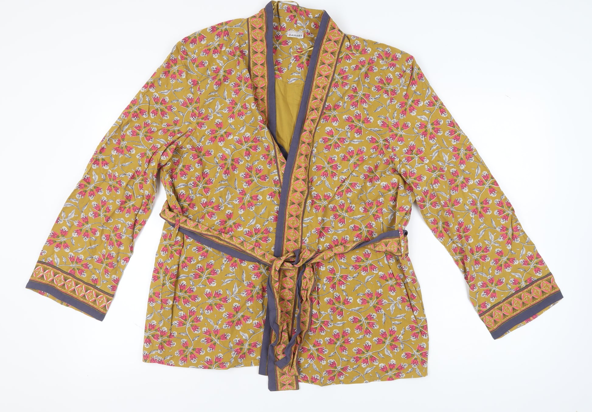 Elevate your wardrobe with this vibrant Damart Women's Kimono Blouse, an ideal choice for casual outings in the spring and summer months. Designed with an eye-catching floral pattern, this multicoloured top adds a pop of boldness to any ensemble. Its long sleeves and relaxed kimono style provide comfort and elegance, whether you're lounging at home or enjoying a day out. Crafted from durable cotton material, the blouse ensures breathability and softness, making it a staple in any woman's collection. The shawl-like neckline brings a chic touch, while the belted feature allows for an adjustable fit, complementing your silhouette effortlessly. Easy to care for, this piece is machine washable, offering convenience without compromising style. Perfect for a casual, yet refined look, this blouse pairs flawlessly with jeans or skirts. Don't miss the opportunity to stand out with this unique Damart creation designed for the fashion-forward woman.