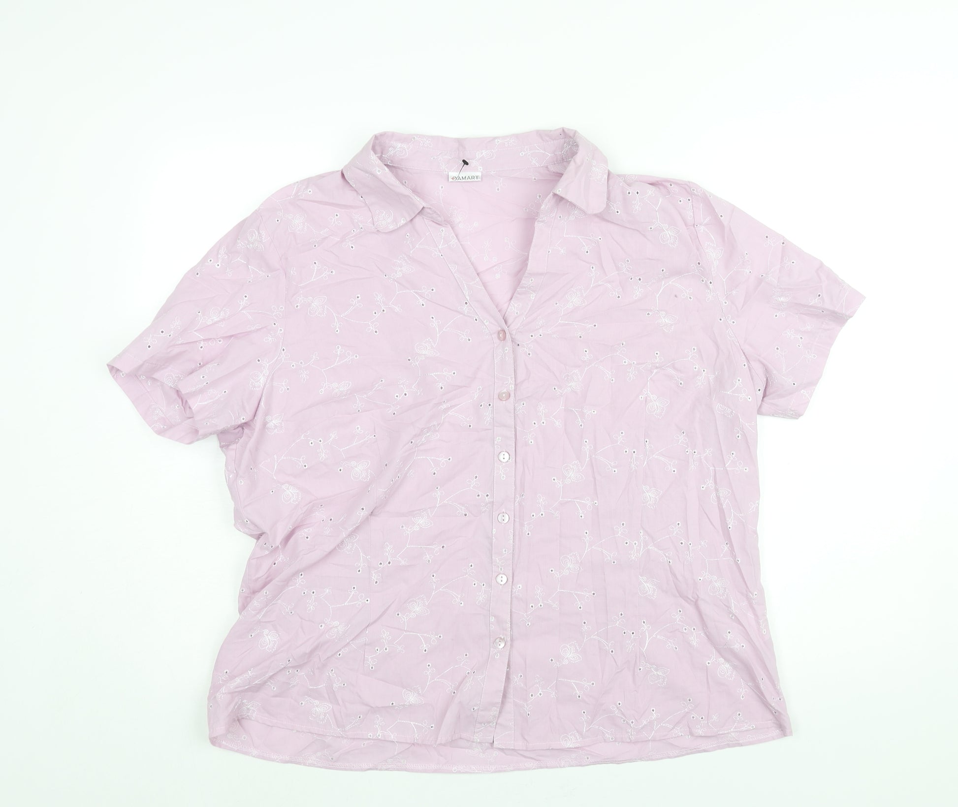 Womens Pink Cotton Basic Button-Up Size 22 Collared - Floral Embroidery