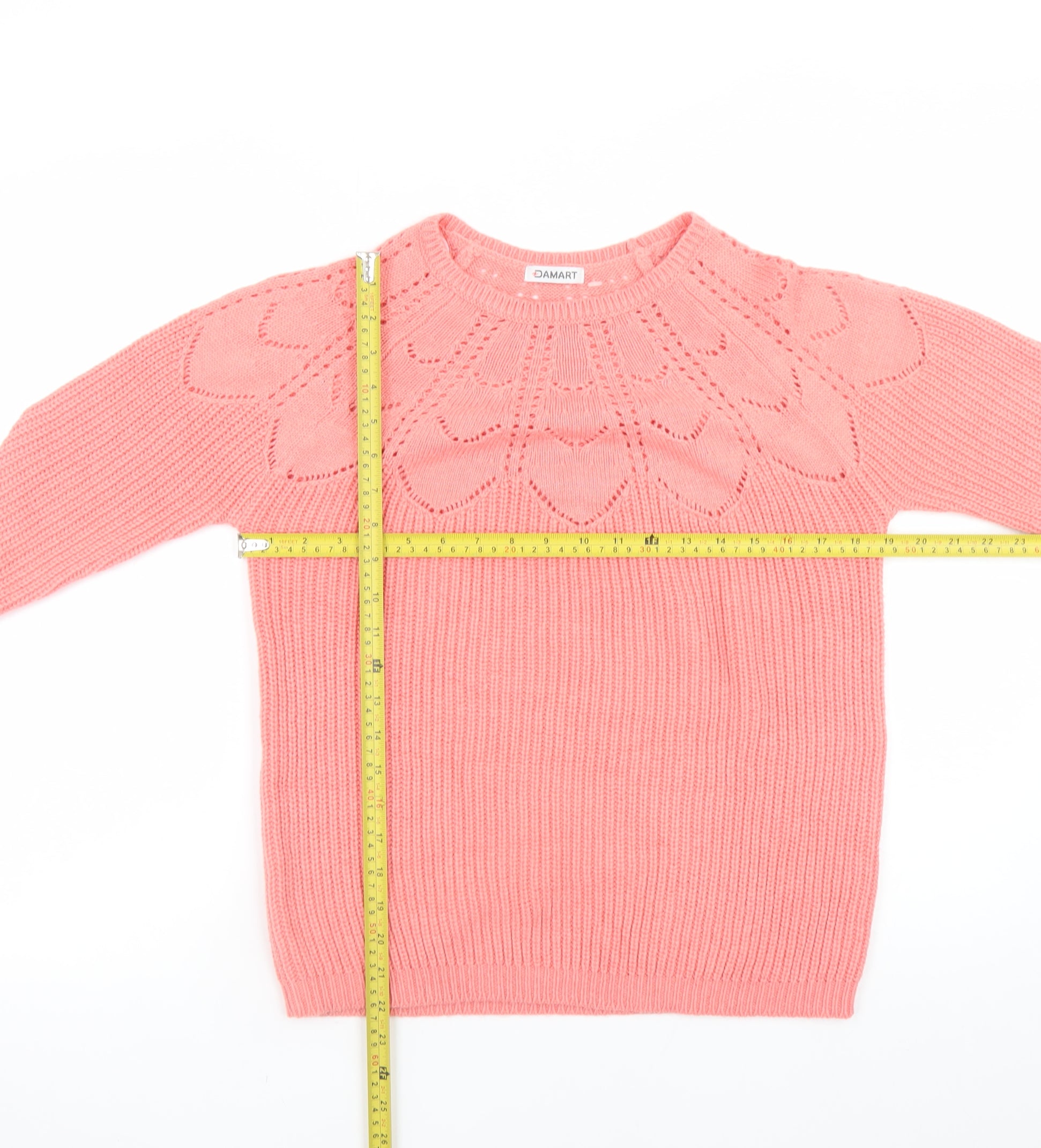 This delightful Damart Women's Pink Pullover Jumper is a charming addition to your cold-weather wardrobe. Crafted with care, it effortlessly combines warmth, comfort, and style for everyday wear. The jumper features a soft chunky-knit texture and a classic crew neckline, making it perfect for casual outings or layering under jackets during cooler days. The beautiful knitted pattern across the yoke adds a subtle decorative touch, enhancing the feminine appeal of this cosy piece.Made from a durable and sustainable blend of 55% recycled polyester and 45% acrylic, this jumper is designed to provide lasting softness while being environmentally conscious. The long sleeves and ribbed hem and cuffs ensure a snug, flattering fit that retains its shape through regular wear. Its lightweight yet warm construction makes it a versatile piece suitable for autumn, winter, and spring seasons.In a cheerful pink tone, this Damart jumper brightens up any outfit and pairs beautifully with jeans, skirts, or tailored trousers for a relaxed yet polished look. The breathable knit fabric allows comfortable all-day wear, while the quality composition ensures easy maintenance with simple machine washing. Designed for women who appreciate a balance of practicality and charm, this piece embodies effortless elegance and enduring comfort.Ideal for casual occasions, this crew neck jumper offers a timeless silhouette that suits a range of styles and settings. Whether you’re heading out for a walk, enjoying a weekend brunch, or relaxing at home, this Damart knitwear piece will keep you warm and stylish throughout the season. Add this soft, pink classic to your wardrobe to enjoy both its wearable design and its sustainable fabric choice.