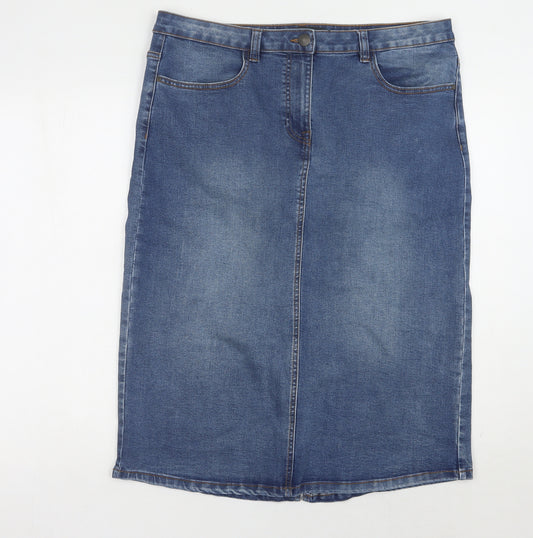 Marks and Spencer Women Blue Short Wool Blend Pencil Skirt Size 16