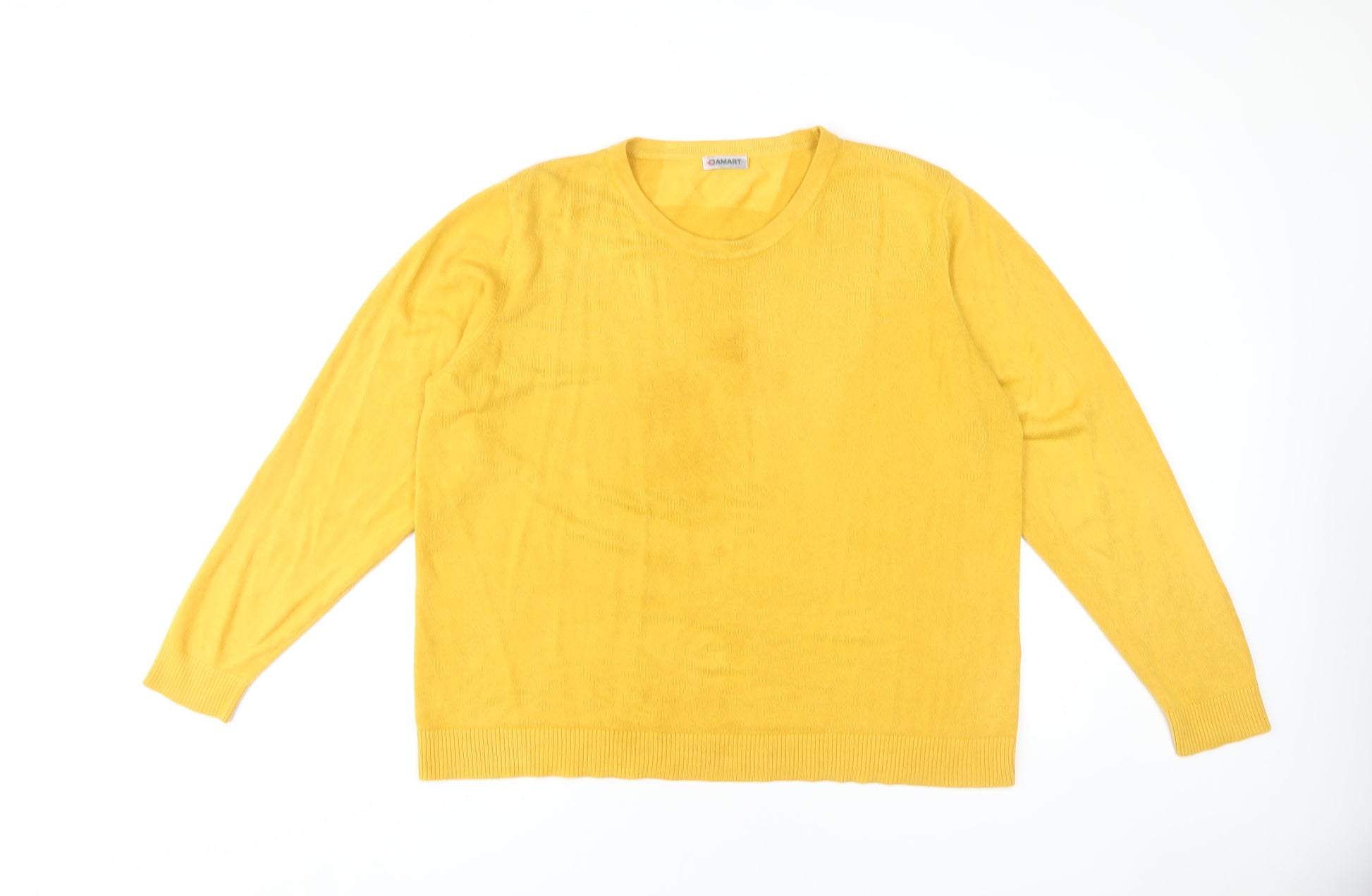 Brighten up your wardrobe with this Damart Women's Pullover Jumper in a cheerful yellow hue. Designed with comfort in mind, this jumper features a classic crew neck and long sleeves, perfect for casual outings or relaxed weekends. Made from 100% acrylic, it offers a soft, lightweight knit that is easy to care for, being machine washable. The sizeable fit, classified as a Plus Size 22, ensures a comfortable, relaxed wear. Despite being used, it remains in excellent condition with only a slight discolouration on the front, making it a great value purchase. Ideal for all seasons, this versatile piece can easily be dressed up or down and pairs perfectly with jeans or leggings. An essential addition to any wardrobe, this jumper provides warmth and style in equal measure.