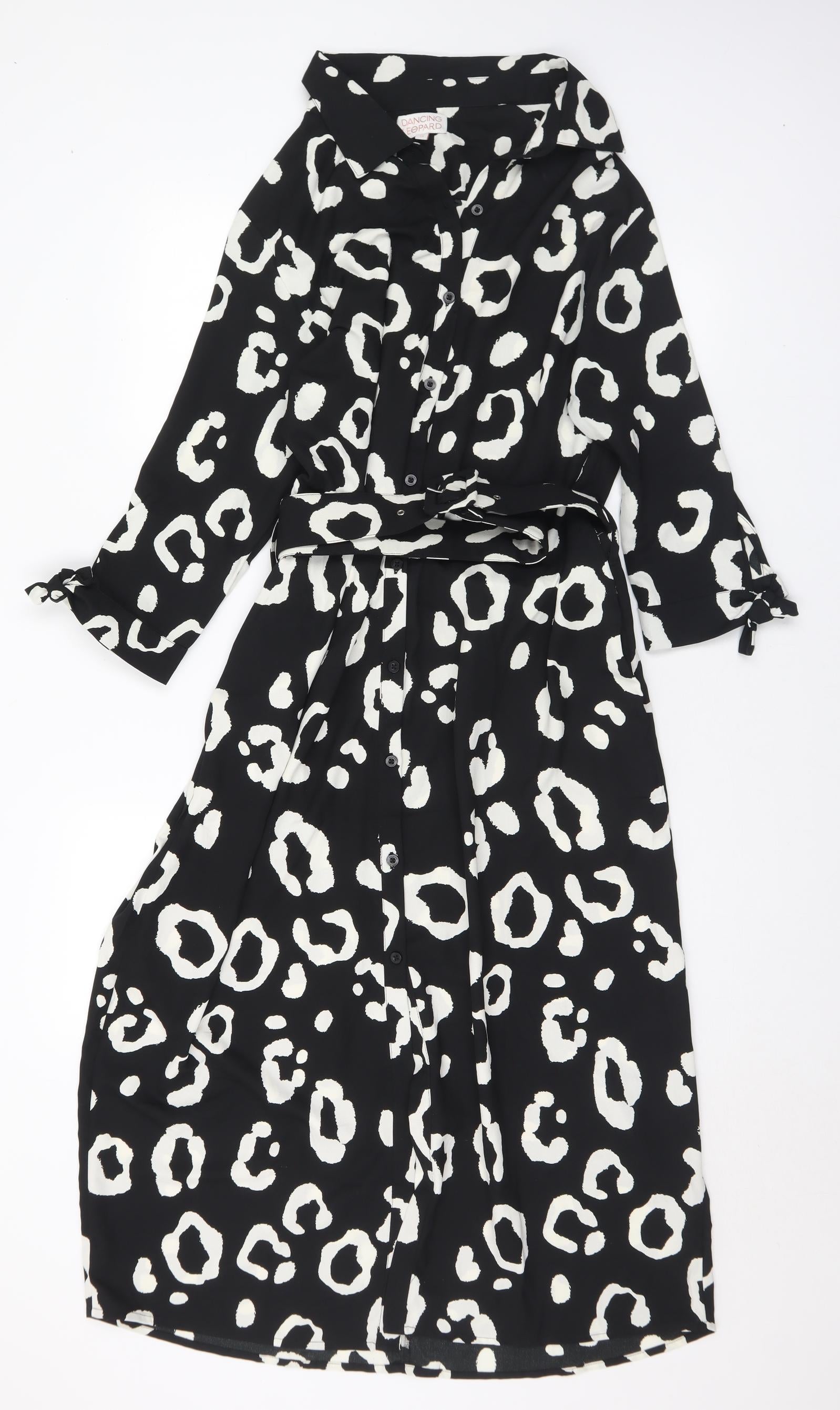 Womens Black Geometric Polyester Shirt Dress Size 16 Collared
