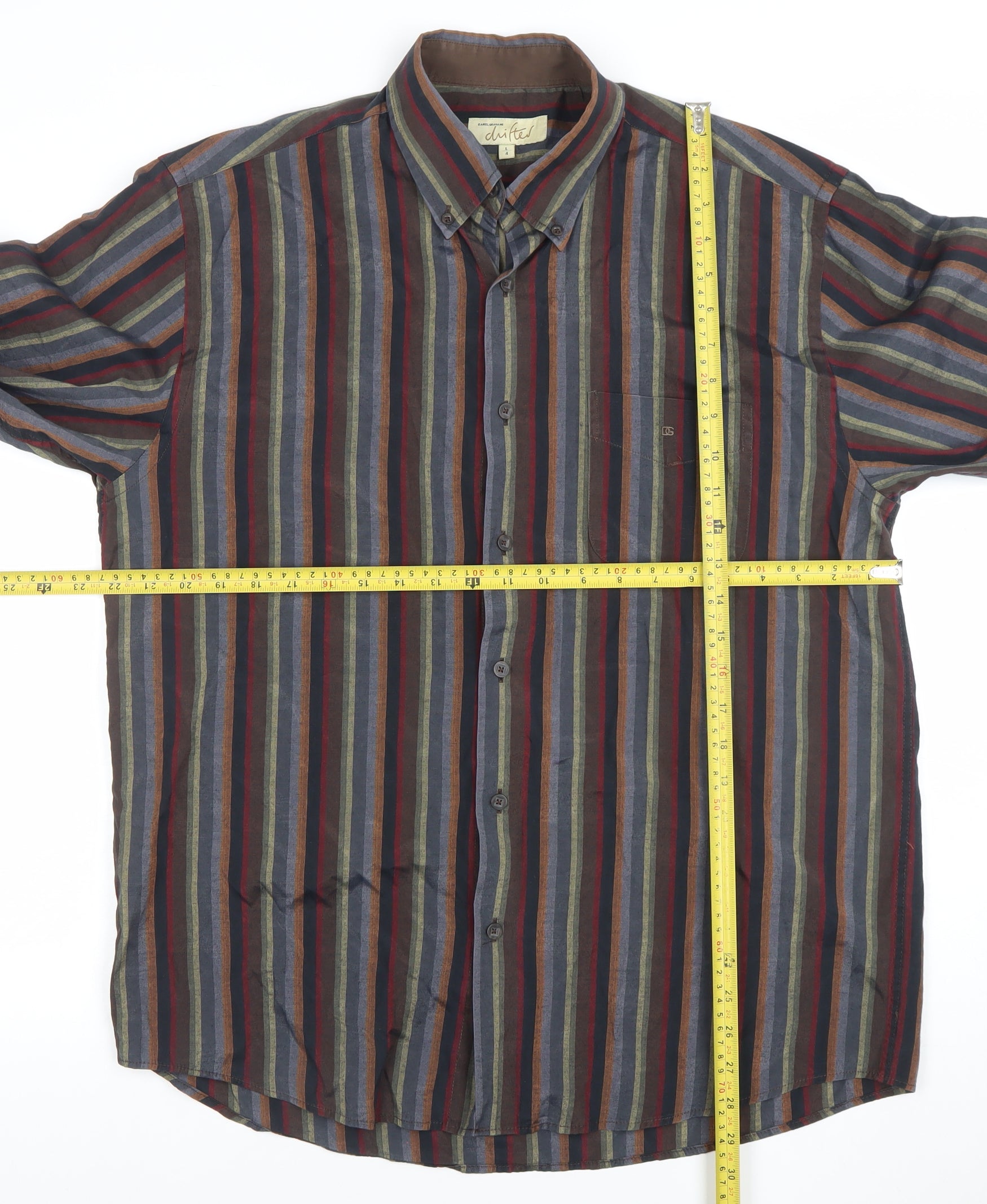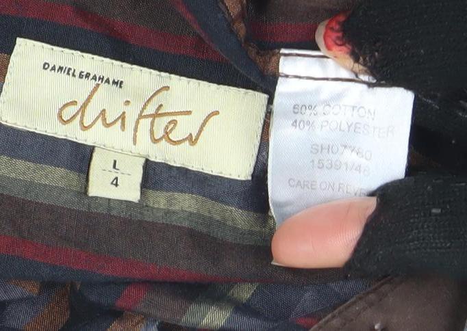 Upgrade your weekend wardrobe with this stylish multicoloured striped shirt from Daniel Grahame. Expertly crafted from a soft and breathable cotton-polyester blend, the shirt features a button-down collar and a full button-up front, offering both comfort and timeless appeal. Designed in a regular fit, this versatile piece ensures effortless wear for all-day comfort while maintaining a smart-casual aesthetic that's perfect for multiple occasions. The shirt’s rich palette of deep reds, blues, greens, and beige stripes creates a distinctive yet classic look that complements jeans, chinos, or tailored trousers alike. Ideal for spring, summer, and autumn, it provides lightweight wearability that transitions easily from season to season. The buttoned cuffs and front pocket add a touch of refinement typical of the Daniel Grahame brand, known for quality menswear with attention to detail. Whether worn open over a tee or buttoned up for a polished finish, this shirt strikes the perfect balance between comfort and sophistication. Machine washable for easy care, this is a dependable wardrobe essential that suits both casual and smart-casual settings. In very good condition with only slight creasing from storage, it’s ready to be enjoyed by its next owner. A great choice for men who appreciate classic design with subtle character. Priced competitively to reflect its quality and condition, this long sleeve striped shirt offers enduring style and versatility without compromise — ideal for casual Fridays, relaxed dinners, or weekend outings with friends.