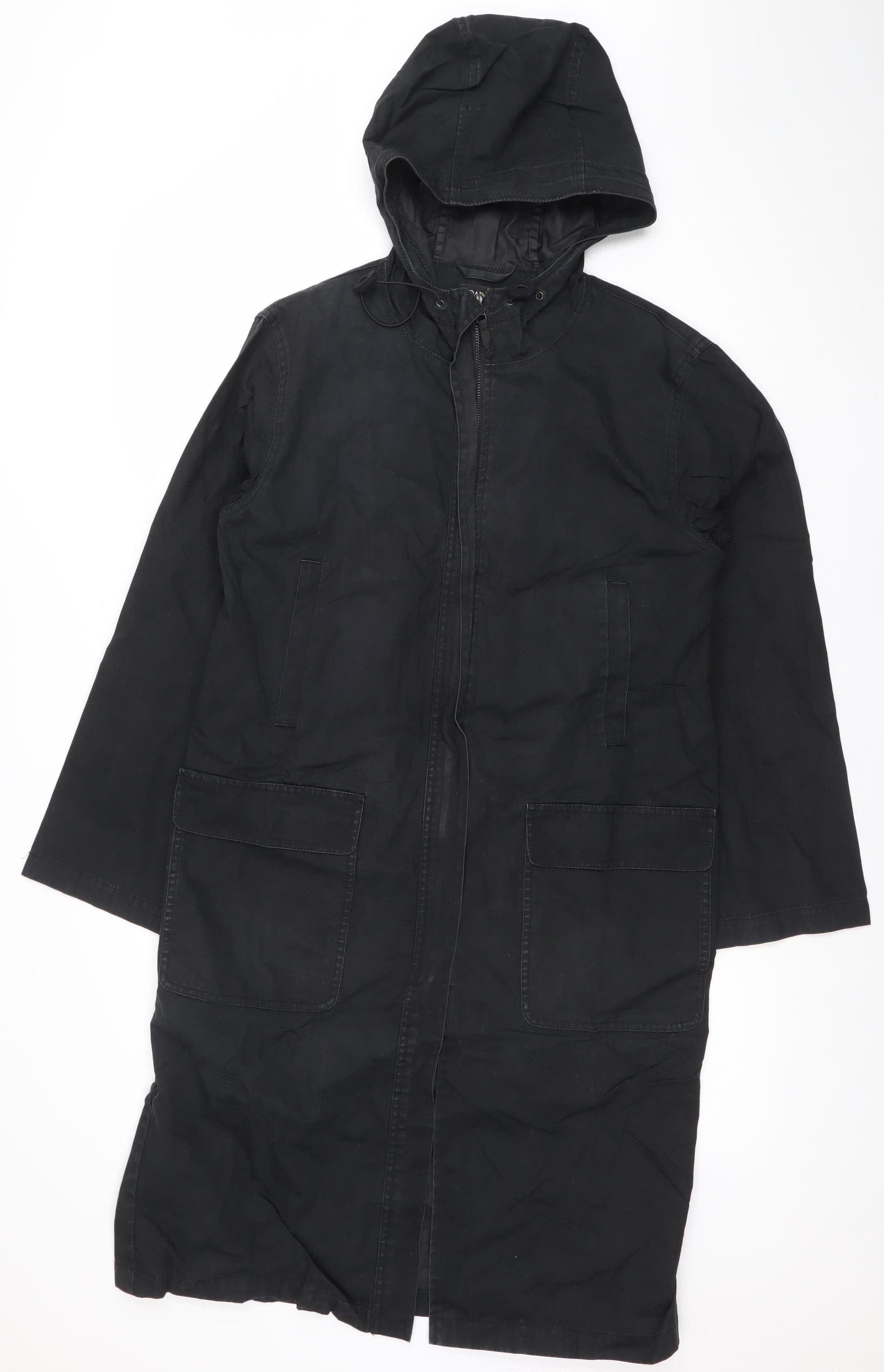 Discover timeless practicality with this DANNIMAC Women’s Black Hooded Rain Coat in size Small. Designed for everyday wear and unpredictable weather, this classic piece combines reliable water resistance with easy comfort. The coat is crafted from an 85% cotton and 15% polyurethane outer shell, giving it both breathability and durability, while the full polyester lining enhances comfort and wearability. Featuring a longer length for extra coverage, this versatile coat has a full zip front and secure button fastening to help block the wind and rain. The practical hood offers added protection from the elements, and the deep front pockets provide both style and function, perfect for carrying daily essentials or keeping hands warm. Finished in a matte black tone, this coat pairs seamlessly with any outfit, making it a staple for city commutes, weekend walks, or stylish everyday layering. The relaxed fit and classic shaping ensure that it suits a variety of body types, while maintaining a clean, flattering line. Lightly worn and in very good condition, this DANNIMAC coat has been well cared for with only minimal creasing from storage. Known for quality outerwear that stands the test of time, DANNIMAC pieces are designed to handle the UK’s changing weather while keeping the wearer smartly dressed. Easy to care for and machine washable, this rain coat is an effortless combination of function, durability, and understated elegance. Ideal for autumn through to early winter, it’s the perfect outer layer for transitional seasons or light rain. Refresh your wardrobe with this dependable black hooded coat – a must-have outerwear piece that blends classic British styling with day-to-day practicality.