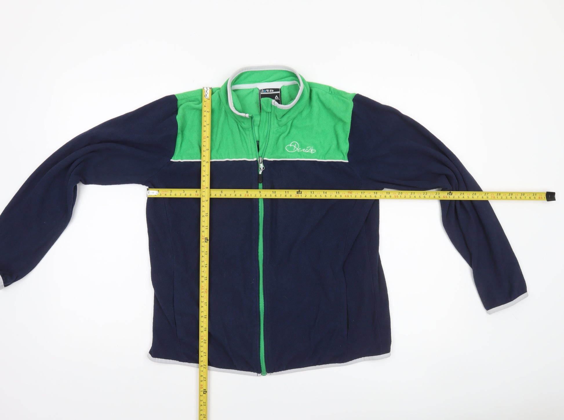 Stay cosy and stylish with this Dare 2b Women's Fleece Jacket in size UK 14. Designed for comfort and performance, this jacket features a soft navy and green fleece outer that keeps warmth in while remaining breathable for everyday wear. The lightweight fleece material ensures freedom of movement, making it great for layering during transitional seasons like autumn and spring. Designed with a full front zip fastening, this jacket allows for easy wear and ventilation as needed. The clean, sporty look and contrasting green shoulders add a vibrant pop of colour while maintaining a casual, versatile style. Inside, the 100% cotton lining provides added softness and comfort against the skin, perfect for long outings, light hiking or travelling. Practical and feminine, this piece is ideal for casual outdoor adventures, strolls, or simply for adding a bit of warmth on cooler days. The regular fit offers enough room for layering over tees or lightweight knits without feeling bulky, keeping your look sleek yet functional. Dare 2b’s attention to detail is clear with the reflective brand logo on the chest, adding subtle outdoor flair. Machine washable for easy care, this jacket boasts durability and long-lasting comfort. A great pick for active women who want reliability and everyday ease in one. Whether you're heading out for a countryside walk or layering up for a trip, this Dare 2b fleece will see you through the seasons in style. In very good condition with only light signs of wear, this jacket continues to offer excellent value for those looking for comfort and practicality. Grab this quality outdoor essential and stay warm wherever your adventures take you.