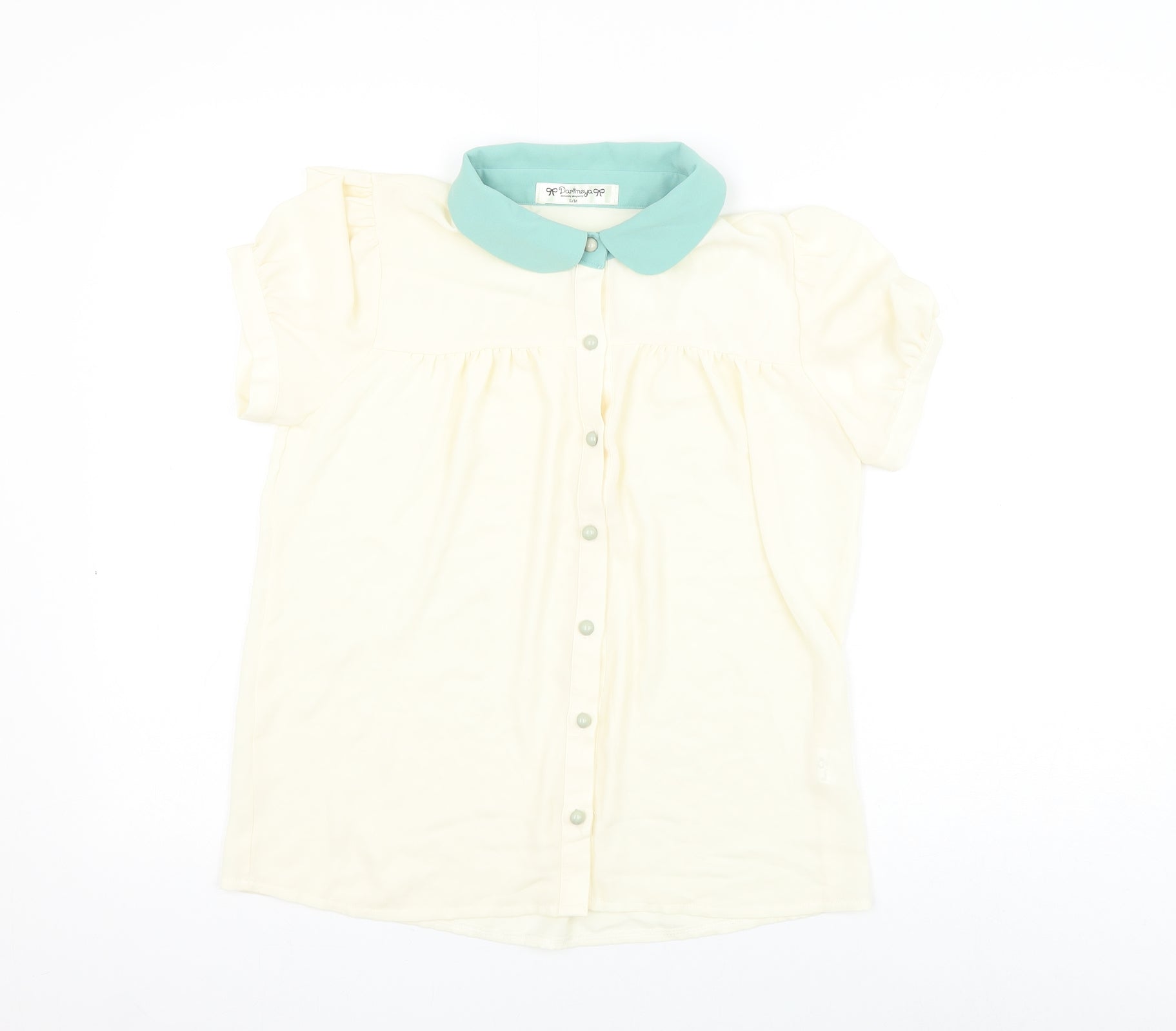 Womens Ivory Polyester Basic Button-Up Size S Collared