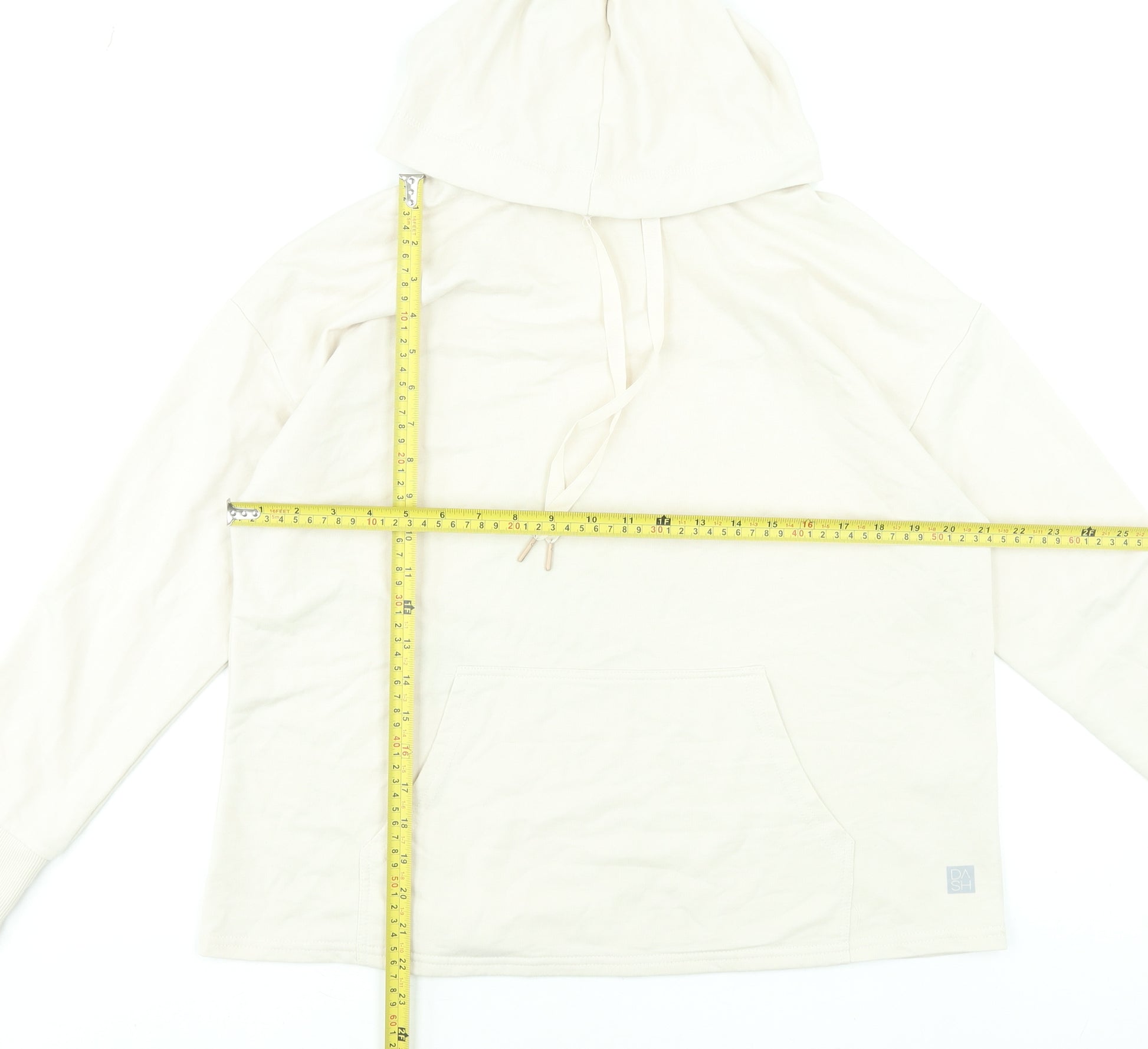 This DASH women’s beige pullover hoodie sweatshirt is a versatile and comfortable addition to any casual wardrobe. Crafted from a soft blend of 65% polyester and 35% cotton, it provides a smooth feel against the skin while maintaining durability and shape wash after wash. The neutral beige tone makes it a perfect layering essential, effortlessly complementing a wide variety of outfits. Designed with a relaxed, regular fit, this hoodie features long sleeves with ribbed cuffs and an adjustable drawstring hood for added comfort and function. The sizeable front kangaroo pocket offers both practicality and a cosy spot to keep hands warm on cooler days. Suitable for everyday wear, this DASH hoodie can be styled up or down—pair it with jeans or leggings for a laid-back weekend look or throw it over sportswear for an easy post-gym outfit. Breathable and lightweight, it’s suited for year-round wear, keeping you comfortable across all seasons. True to size at UK 14, this timeless piece easily blends fashion and function. The smooth finish and minimalistic design make it ideal for individuals who appreciate simplicity with subtle sophistication. In excellent pre-owned condition, this hoodie shows minimal signs of previous wear and has been well cared for, ensuring plenty of life left in the fabric. A reliable staple from DASH, known for quality and comfort, this garment offers great value. Perfect for walks, lounging, travel, or casual social occasions, it’s the definition of effortless everyday style.