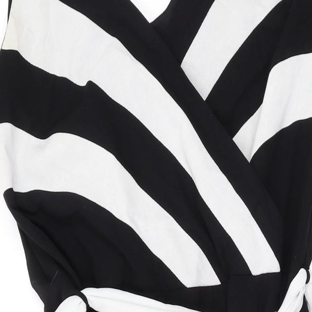 F&F Womens Black Striped Viscose Skater Dress Size 14 Round Neck Zip