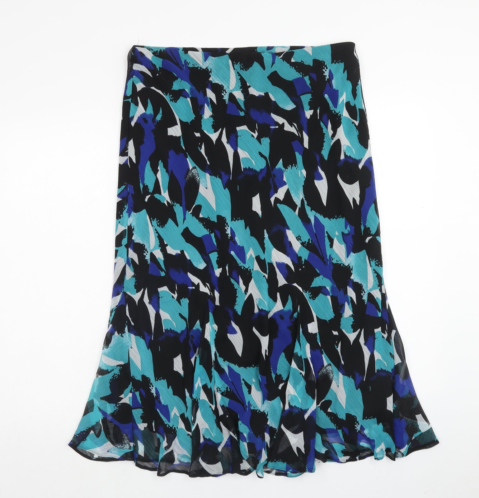 Womens Blue Geometric Polyester A-Line Skirt Size 16