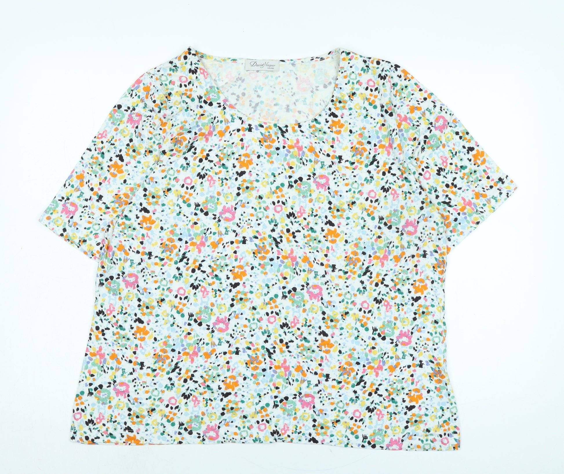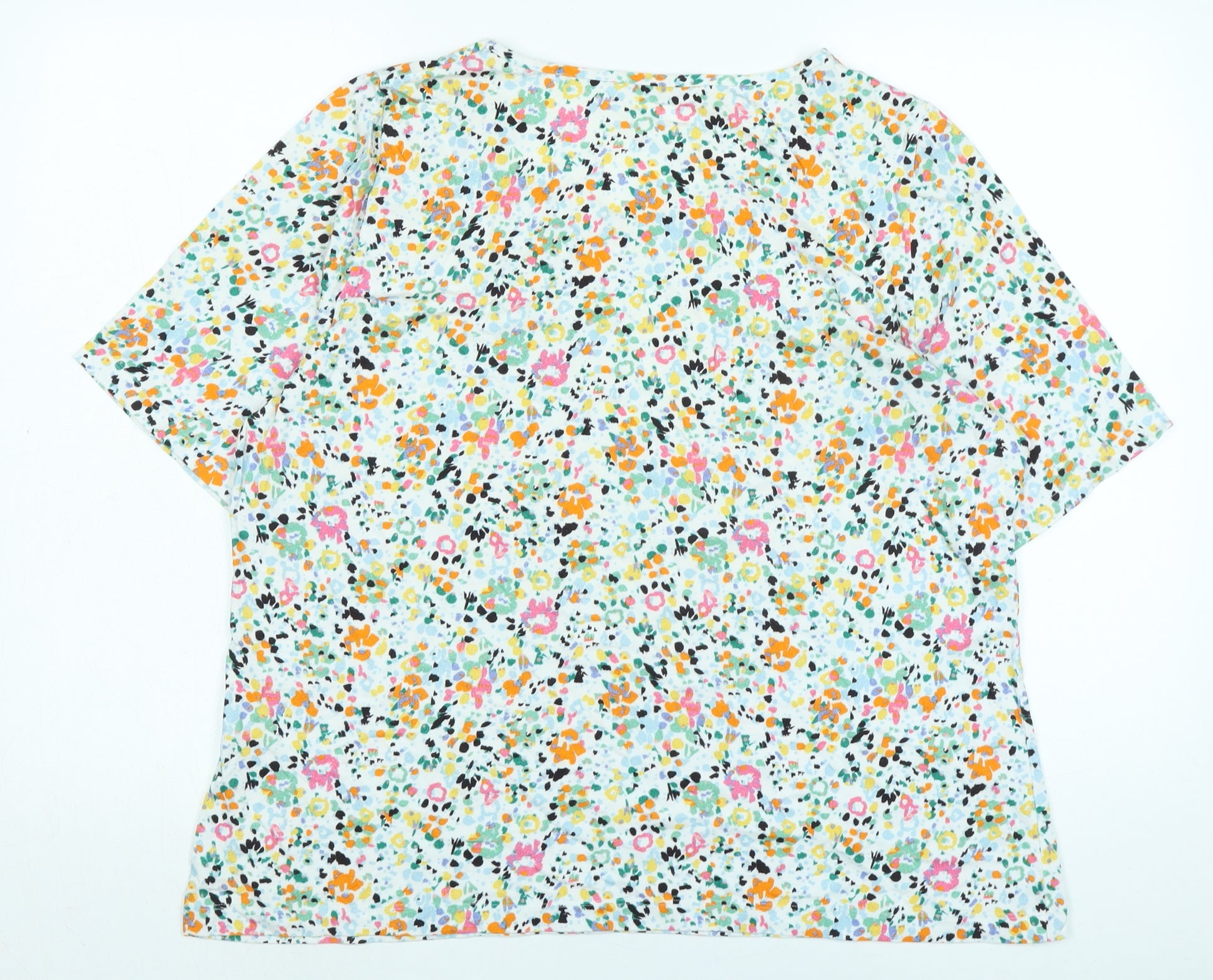 Womens Multicoloured Floral Cotton Basic T-Shirt Size 22 Scoop Neck
