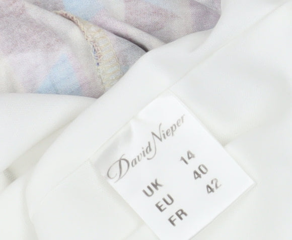 Discover an elegant touch to your wardrobe with the David Nieper Women's Midi Skirt, featuring an eye-catching multicoloured geometric pattern. Perfectly crafted for comfort, this skirt in size 14 offers a flattering mid-length, making it ideal for any sophisticated occasion. Its versatile style effortlessly transitions from day to evening, ensuring you stay chic wherever you go. The high-quality fabric makes it a durable staple that you can rely on, while its vibrant hues add a splash of colour to your ensemble. This excellent condition skirt, without tags, promises to be a core item in your playbook of fashion. Embrace the unique design and elevate your outfits with captivating flair.