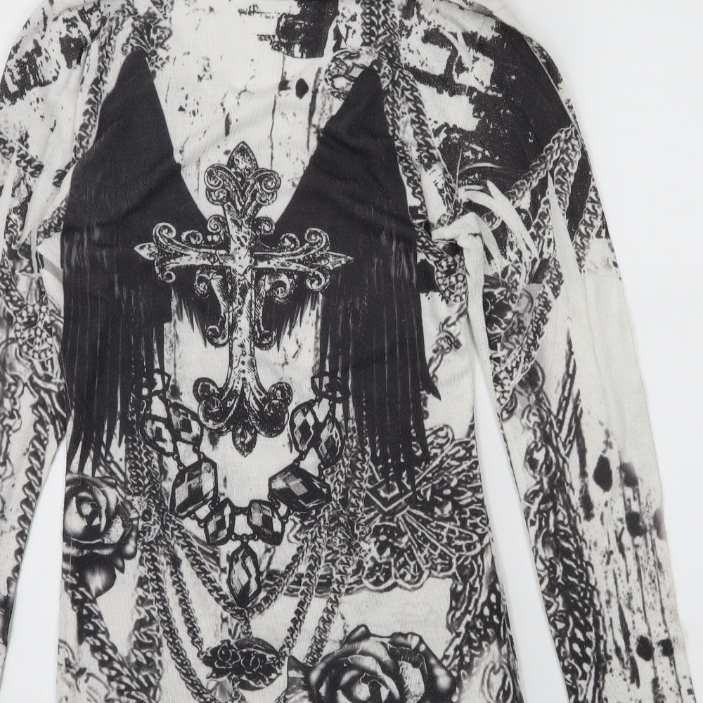 Womens White Geometric Knit Pullover Hoodie Size M