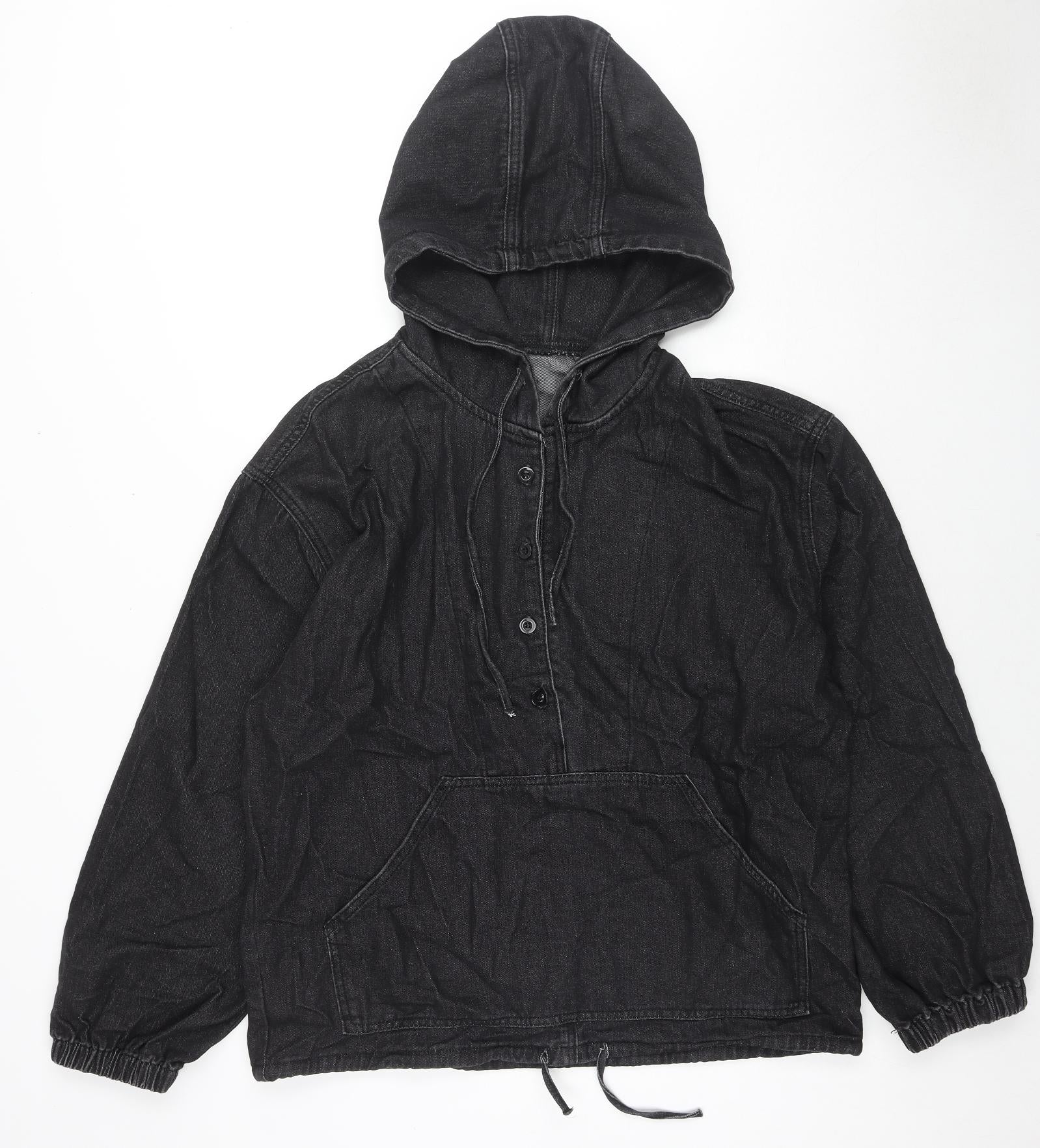 Womens Black Cotton Pullover Hoodie Size XL Button