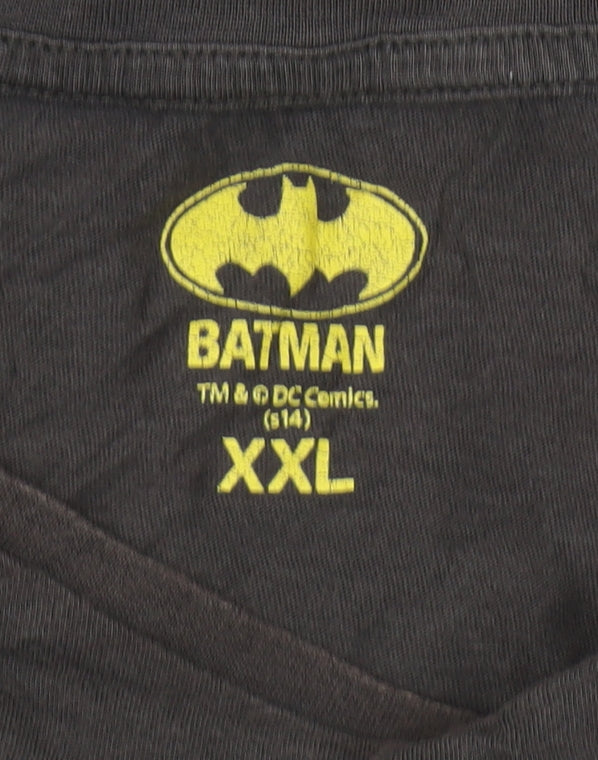Embrace your inner superhero with this captivating Batman T-shirt. Made from 100% cotton, this short sleeve, crew neck tee ensures comfort and breathability, perfect for daily wear or casual outings. Featuring an iconic graphic print of Batman, this black, 2XL T-shirt is a must-have for any fan of DC Comics. With its regular fit, it's designed to accommodate a range of body types, making it a versatile addition to your wardrobe. The jersey fabric provides a soft and durable feel, ensuring that it withstands regular use. A logo accent adds an authentic touch, celebrating the legendary Batman character. Whether you're a collector or simply love the Batman franchise, this T-shirt is ideal for all seasons, allowing you to showcase your fandom year-round. Despite its slightly wrinkled fabric, it remains in excellent condition. Machine washable for easy care, this tee is ready to be part of your everyday adventures. Perfect for fans who want to keep their superhero spirit alive, this Batman T-shirt speaks volumes with its bold and timeless design.