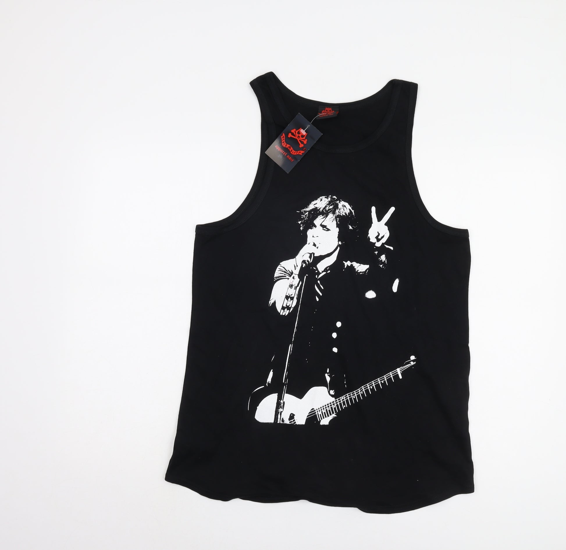 Introducing the Death Kitty Unisex Tank Top in a sleek black colour, perfect for adding a hint of edgy style to your wardrobe. Crafted from 100% cotton, this lightweight and breathable tank guarantees comfort throughout the day, making it a versatile piece for any casual occasion. Its solid black hue complements the graphic design on the front, depicting a rock musician in a striking, monochromatic style that captures the essence of cool rebellion. The tank top is designed for unisex adults, embodying a classic sleeveless cut that allows for free movement and a relaxed fit, ideal for layering or wearing on its own. With its bold look and comfortable fit, it's a standout piece for both men and women looking to express their individual style. Brand new with tags attached, you can be assured of its pristine quality. The Death Kitty label inside adds a touch of authenticity and niche allure to the piece. Whether you're heading to a music festival, casual outing, or simply relaxing at home, this tank top is bound to become a favourite in your collection. Easy to care for, it's machine washable, ensuring that it stays in top condition wear after wear. Add a touch of alternative fashion to your wardrobe with the Death Kitty tank top, and embrace your unique style with confidence.