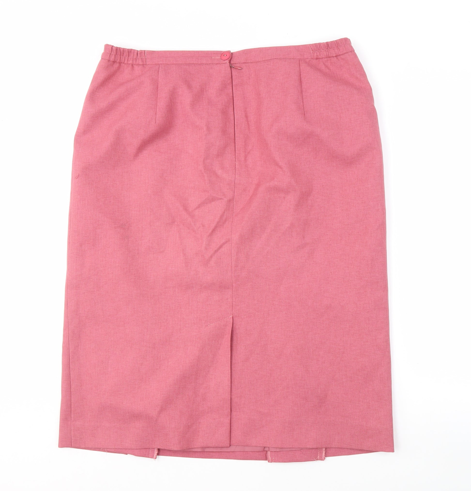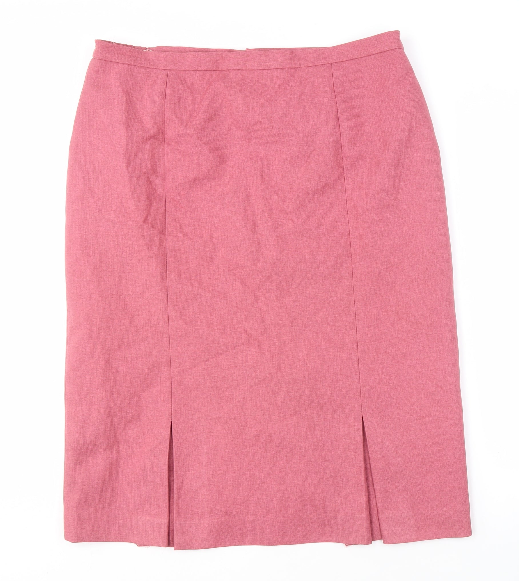 Discover timeless elegance with this Debenhams Classics Women’s Pink Midi Pencil Skirt. Designed with a flattering straight and pencil style, this skirt is perfect for workwear and casual occasions, offering a sophisticated touch to your wardrobe. Crafted in a lovely pink hue without any pattern, it’s versatile enough to pair with a variety of tops, making it a staple piece for every season. Made from reliable polyester with a button closure and a comfortable midi length, it ensures ease of movement. The skirt's mid-rise fit and slit feature add to its modern appeal. Despite being in excellent condition, it shows slight creasing, maintaining its charm. Embrace functionality and style with this essential piece.