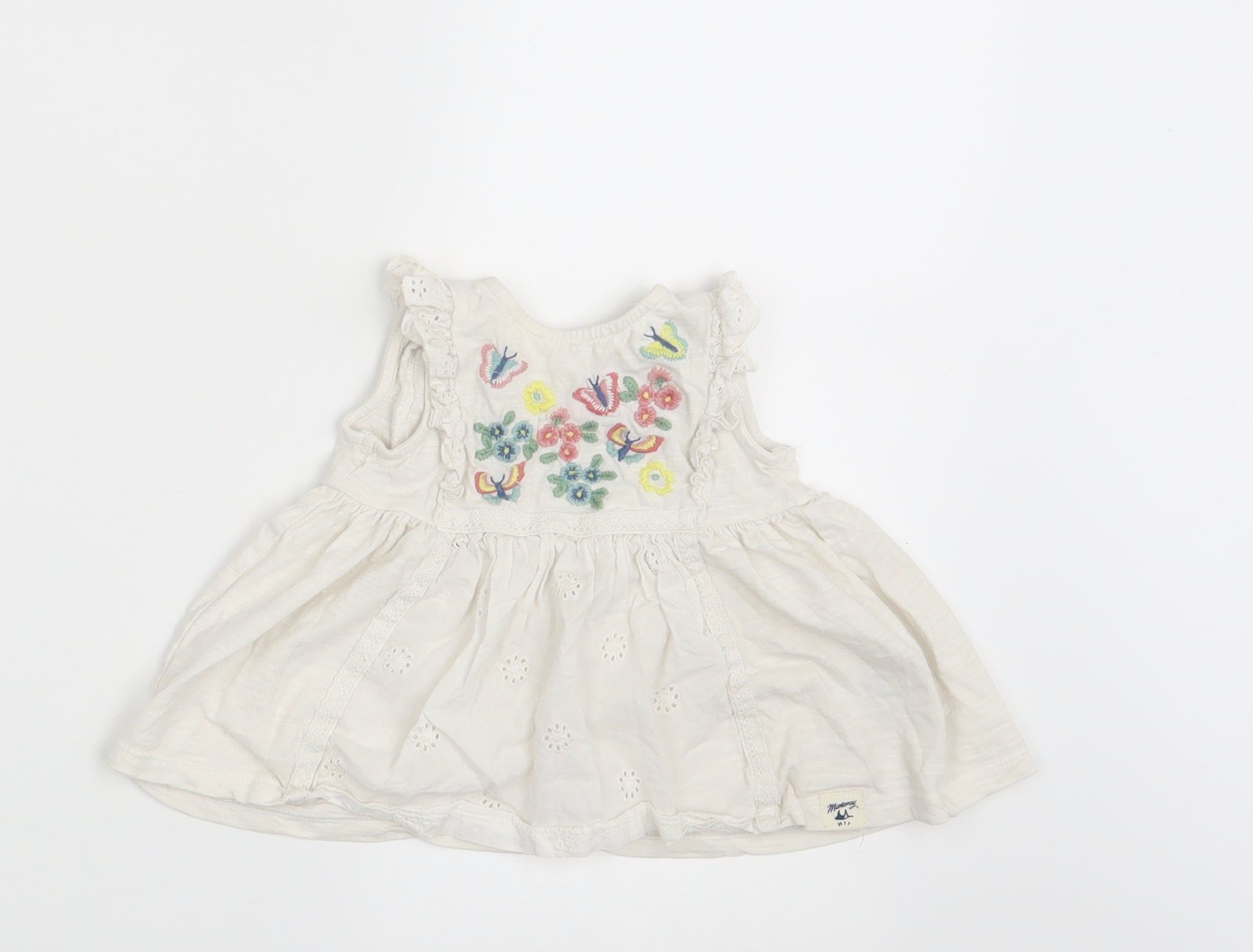 Girls White Floral T-Shirt Dress Size 3-6 Months