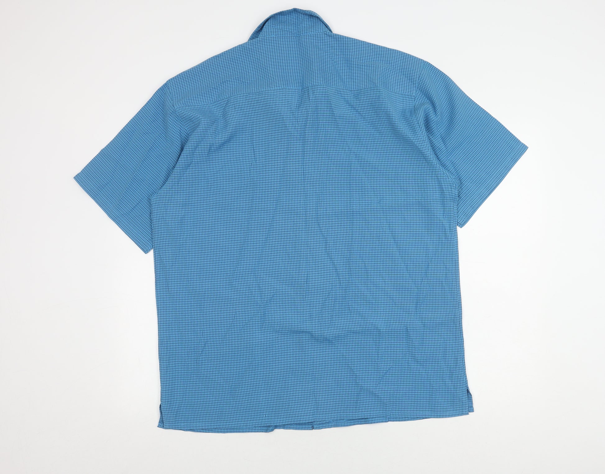 Elevate your casual wardrobe with this stylish blue checked shirt from Debenhams, perfect for various occasions. Designed for the modern man, this medium-sized shirt promises both comfort and style, featuring a classic collared neckline and easy button-up closure. Made from a quality polyester-viscose blend, the fabric ensures durability and breathability for all seasons. The short sleeves make it an ideal choice for warmer days, while the striking check pattern adds a touch of sophistication to any outfit. Suitable for casual gatherings, outdoor events, or a laid-back weekend look, this shirt will effortlessly complement your style. With its excellent condition and timeless design, it's a worthy addition to your collection. Don't miss out on enhancing your fashion statement with this versatile piece.