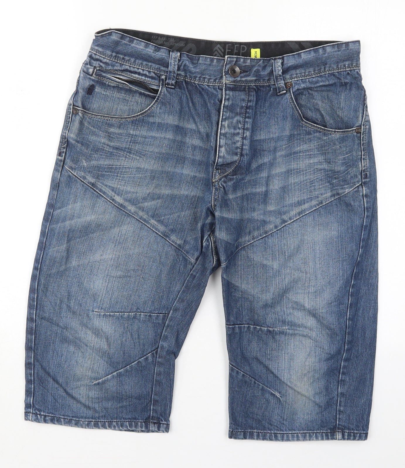 Mens Blue Cotton Bermuda Shorts Size 34 L14 in Regular Button