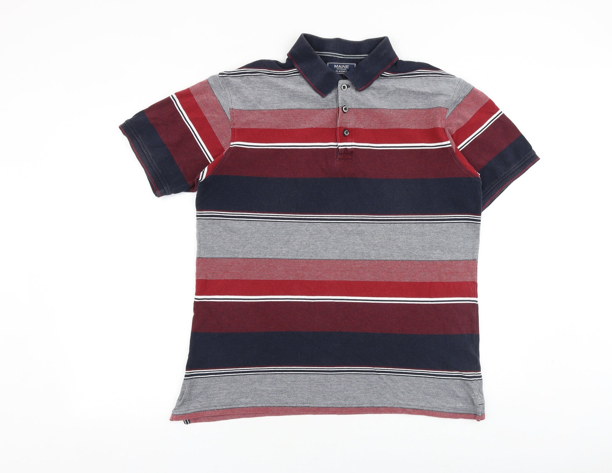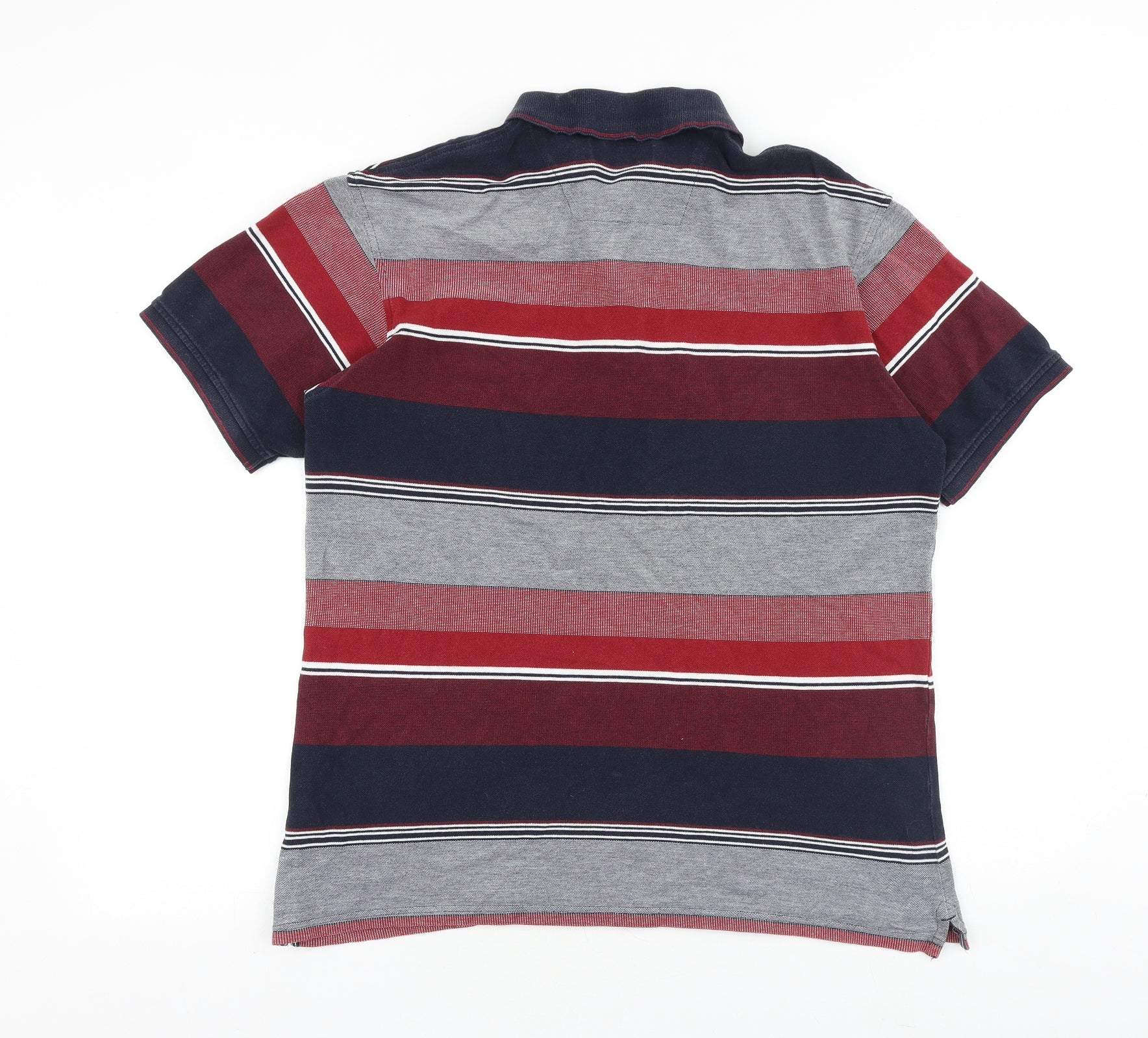Mens Multicoloured Striped 100% Cotton Polo Size M Collared Button