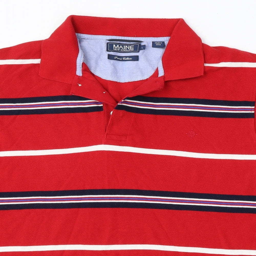 Abercrombie & Fitch Men's Red Striped Long Sleeve Polo Shirt L