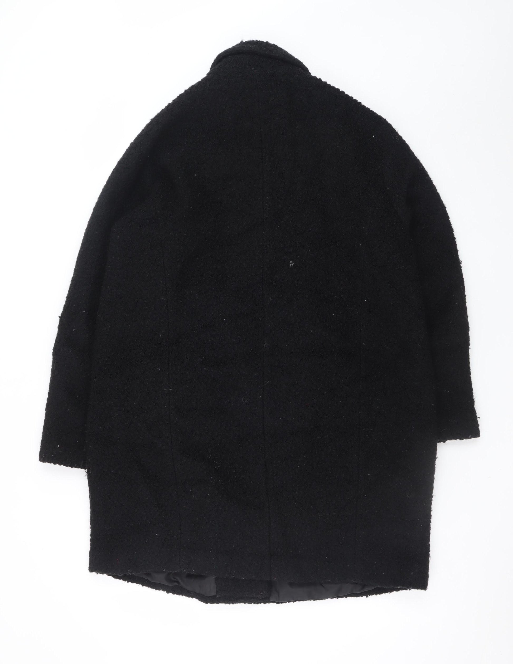 Elevate your cold-weather wardrobe with this chic black wool-blend coat from The Collection by Debenhams. Designed in a timeless mid-length silhouette, this sleek piece features a modern asymmetric zip fastening and polished zip accents on the sleeves that add subtle edge and style. Expertly tailored with a full lining for comfort and structure, this coat ensures a flattering regular fit that is both warm and elegant — ideal for layering during cooler months. Crafted from a cosy wool-polyester blend, it retains heat while offering a soft texture and premium feel. Perfect for casual outings or a polished workwear look, it transitions seamlessly from day to evening wear. Its minimalist appeal and clean lines make it a versatile staple you'll reach for season after season. Team it with jeans and ankle boots for an effortlessly chic daytime look or layer over a dress for refined office wear. This versatile coat embodies understated luxury and practicality, making it a must-have addition to any modern woman's wardrobe. In excellent pre-loved condition with minimal signs of wear, it delivers enduring quality and timeless appeal at a fraction of the original retail price — a genuinely stylish and sustainable choice for your outerwear collection.