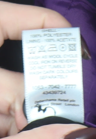 Elevate your professional wardrobe with this elegant Debenhams women’s black blazer. Expertly tailored from high-quality woven polyester, this jacket offers a sleek and structured silhouette that’s perfect for business, workwear, or formal occasions. Its classic single-breasted cut with a three-button front gives a polished, timeless appeal, while the subtle shaping and long sleeves create a flattering and comfortable fit designed to complement the modern professional. The jacket features a sophisticated notch lapel and smooth purple acetate lining, ensuring both durability and comfort throughout wear. Designed for versatility, it pairs seamlessly with trousers, skirts, or dress pieces, offering endless styling potential. This women’s blazer, sized UK 16 (EU 44), provides a figure-enhancing yet comfortable fit suitable for regular sizing. Its durable woven finish ensures it maintains its form and texture, even with regular use. The fully lined interior provides added structure and a premium feel, ideal for year-round wear, particularly in autumn and winter seasons. Perfect for boardroom meetings, formal events, or simply adding refined structure to your wardrobe, this tailored black blazer embodies effortless sophistication. This pre-loved piece remains in excellent condition with minimal signs of previous wear and no visible flaws, offering great value and timeless style. Easy to care for, it’s machine washable and made to offer enduring quality with minimal maintenance. A wardrobe essential for the discerning woman, this Debenhams blazer merges classic design with everyday practicality—making it a key piece for those who appreciate both function and finesse. Refresh your look and add professional polish with this elegant black blazer that speaks to timeless British tailoring and versatile appeal.