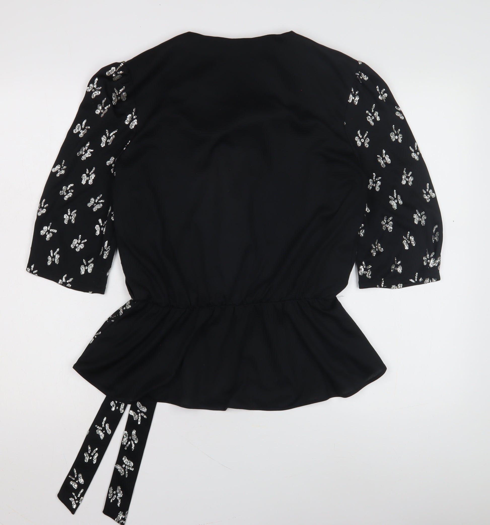 Classic Women’s Black Floral Long Sleeve V-Neck Blouse Size 14