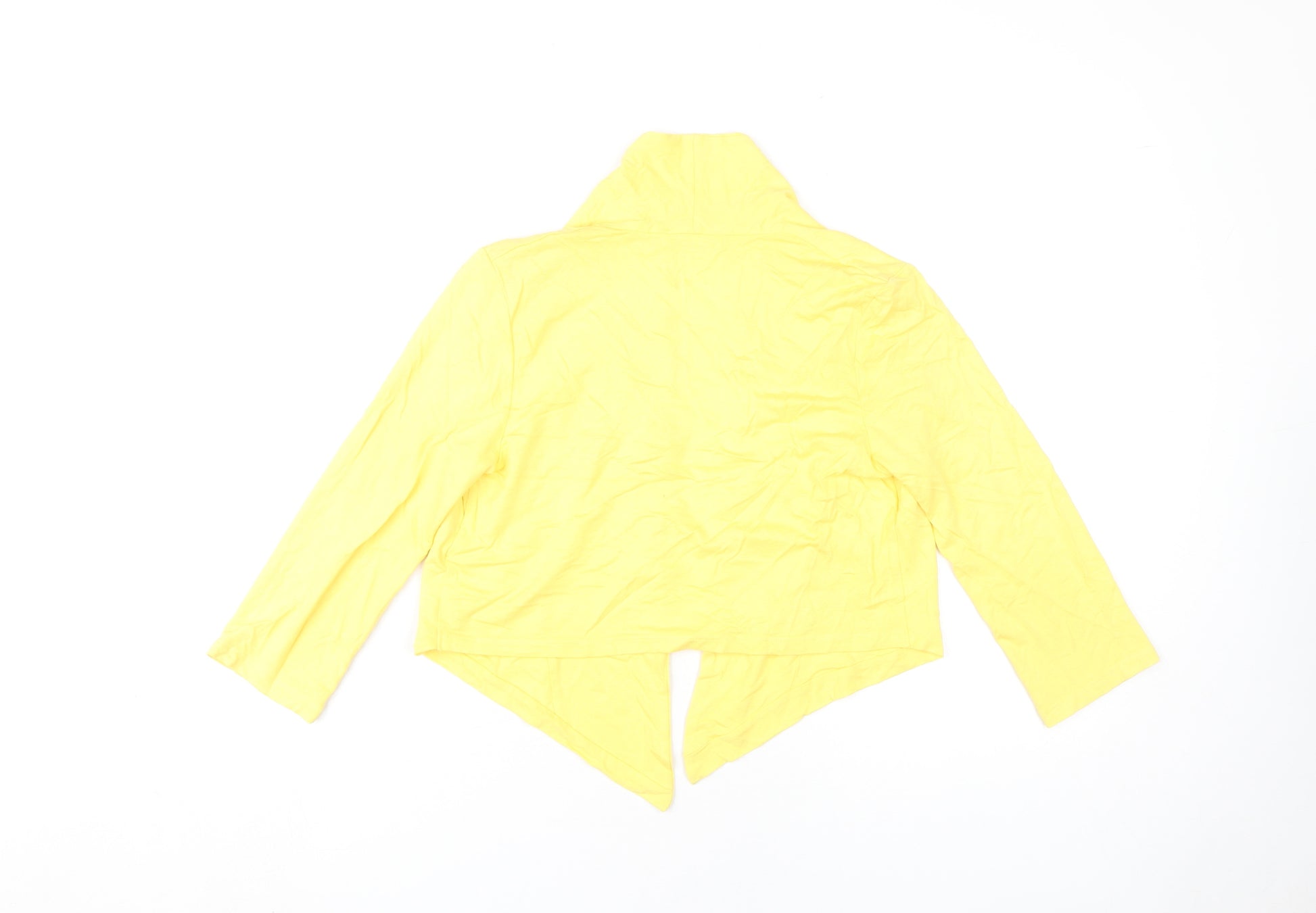 Brighten up your wardrobe with this chic yellow cardigan from Debenhams' The Collection, perfect for women who appreciate style and comfort. Crafted for petites, this size 10 cardigan offers a flattering fit, perfect for casual occasions. Made from a soft blend of 96% viscose and 4% elastane, the fabric ensures a comfortable stretch and breathability. Long sleeves and an open front make it a versatile piece to layer over your favourite tops and blouses. Although this cardigan is in excellent condition, it has no original sales tags attached. Slightly wrinkled but otherwise well-maintained, it pairs beautifully with jeans or skirts for a relaxed yet stylish look. Its vibrant yellow hue brings a splash of colour to any outfit, making it a must-have for the upcoming seasons. Machine washable, this garment allows for easy care, keeping you effortlessly fashionable without the hassle.