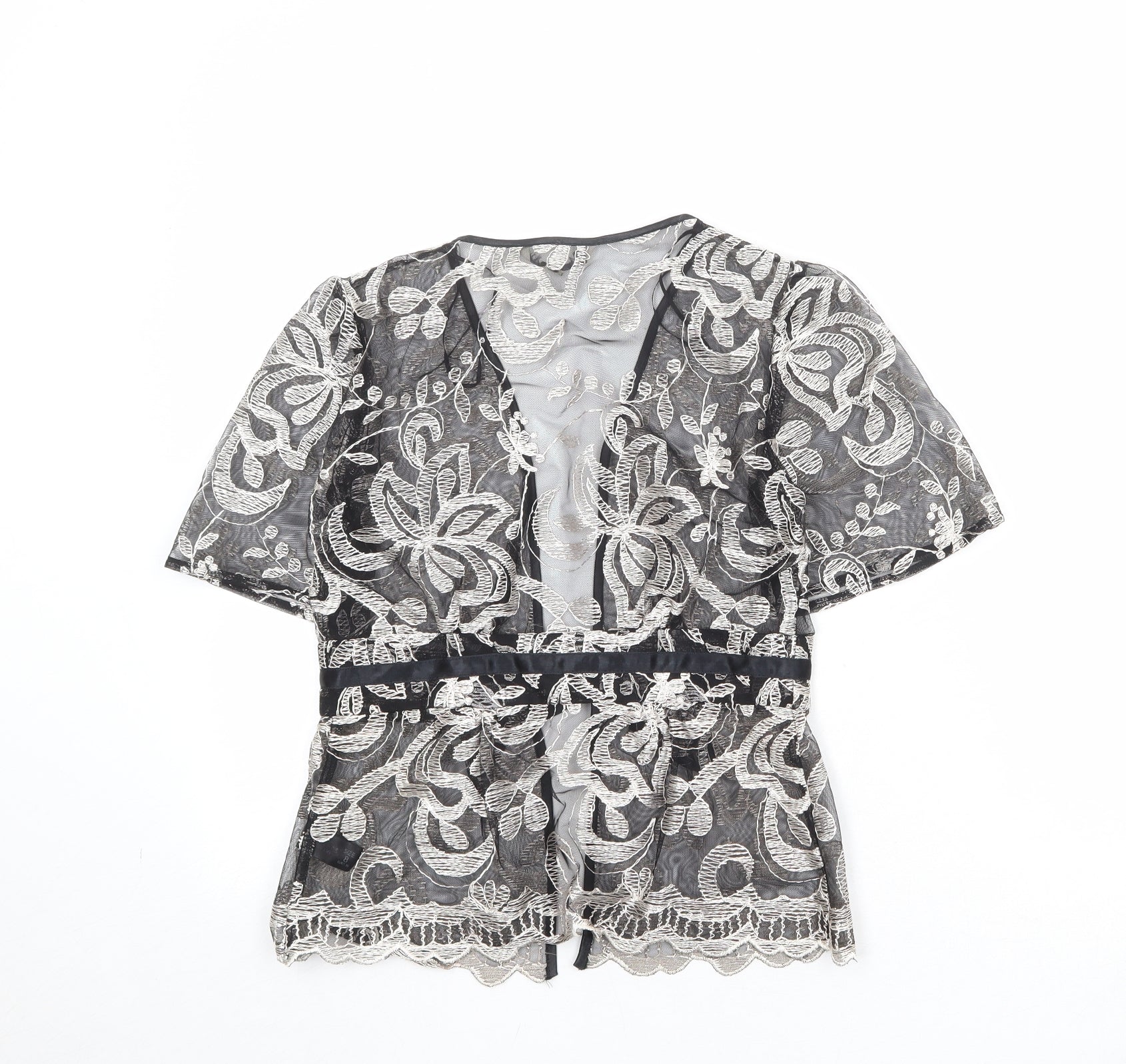 Womens Black Geometric Polyester Kimono Blouse Size 8 V-Neck