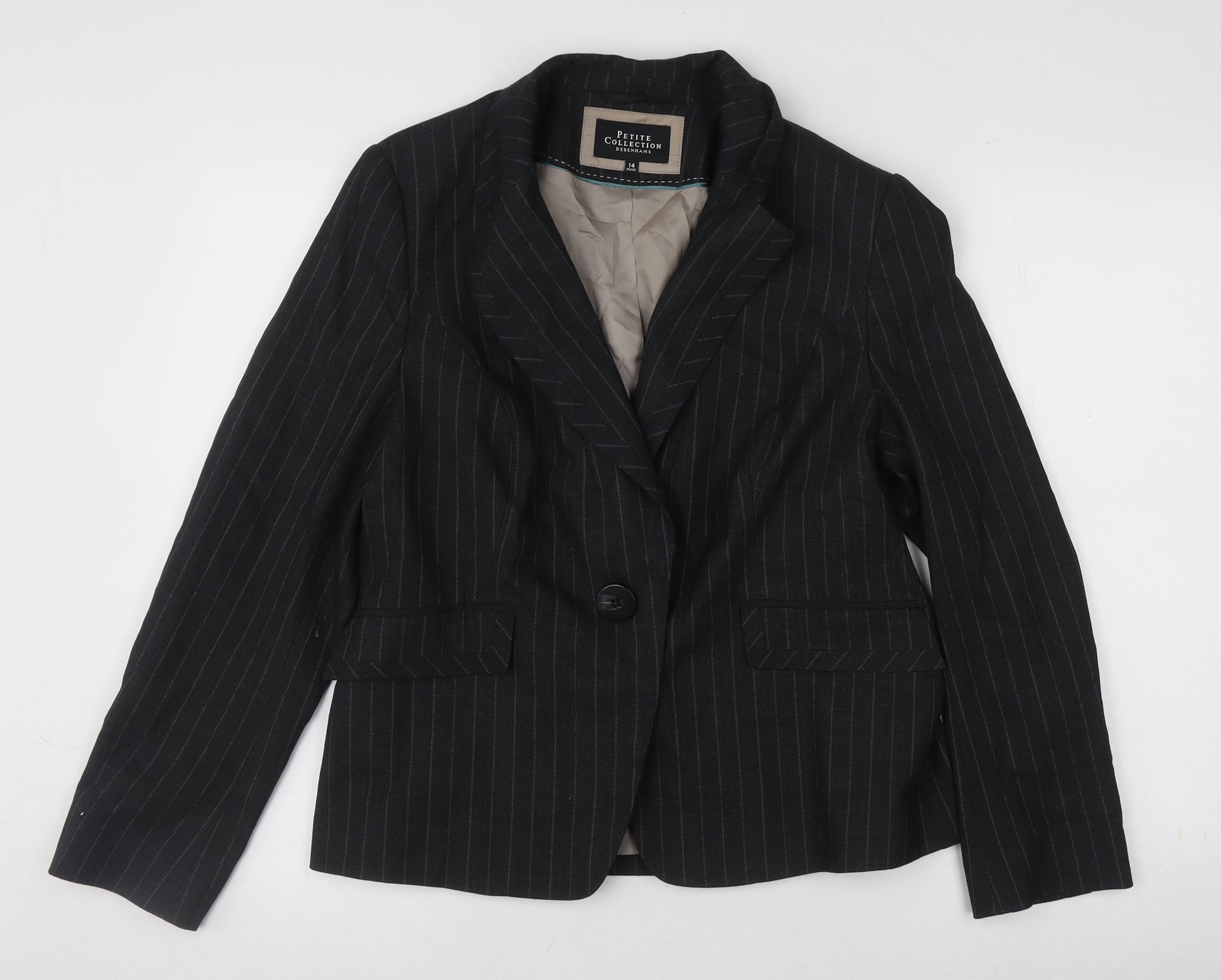 Regular price£14.75£1475Regular priceUnit price / perSale price £14.75 GBPNext Women Grey Pinstripe Single-Breasted Blazer UK 14 Classic Fit