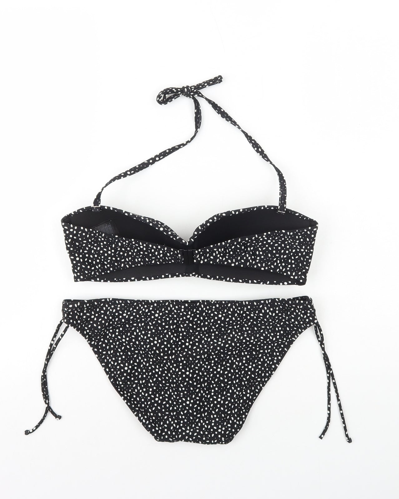 Womens Black Polka Dot Polyamide Bikini Size 14