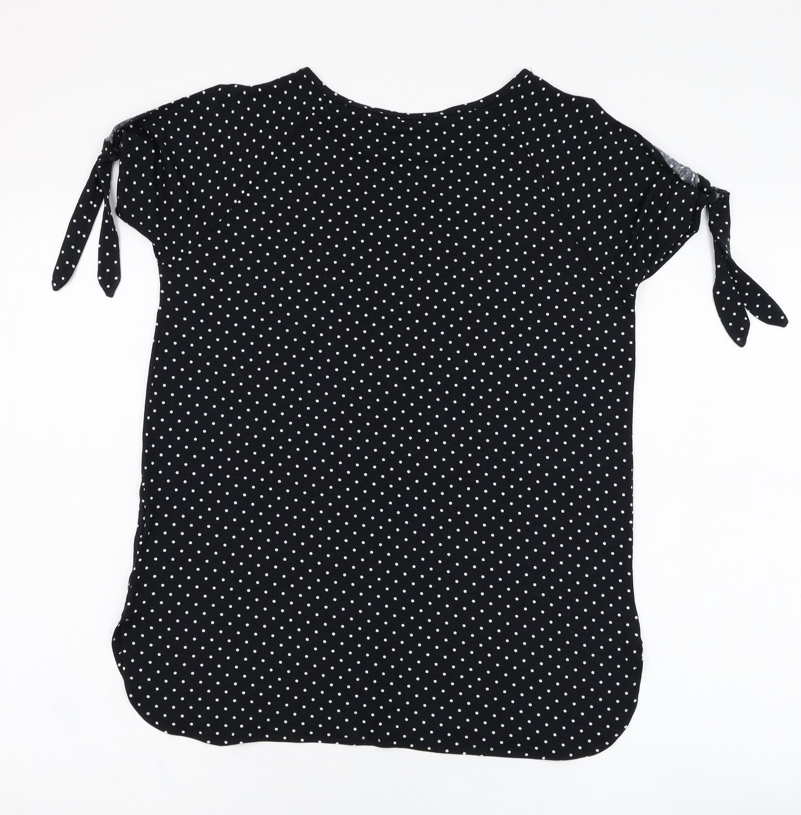 Womens Black Polka Dot Polyester Basic T-Shirt Size 14 Round Neck