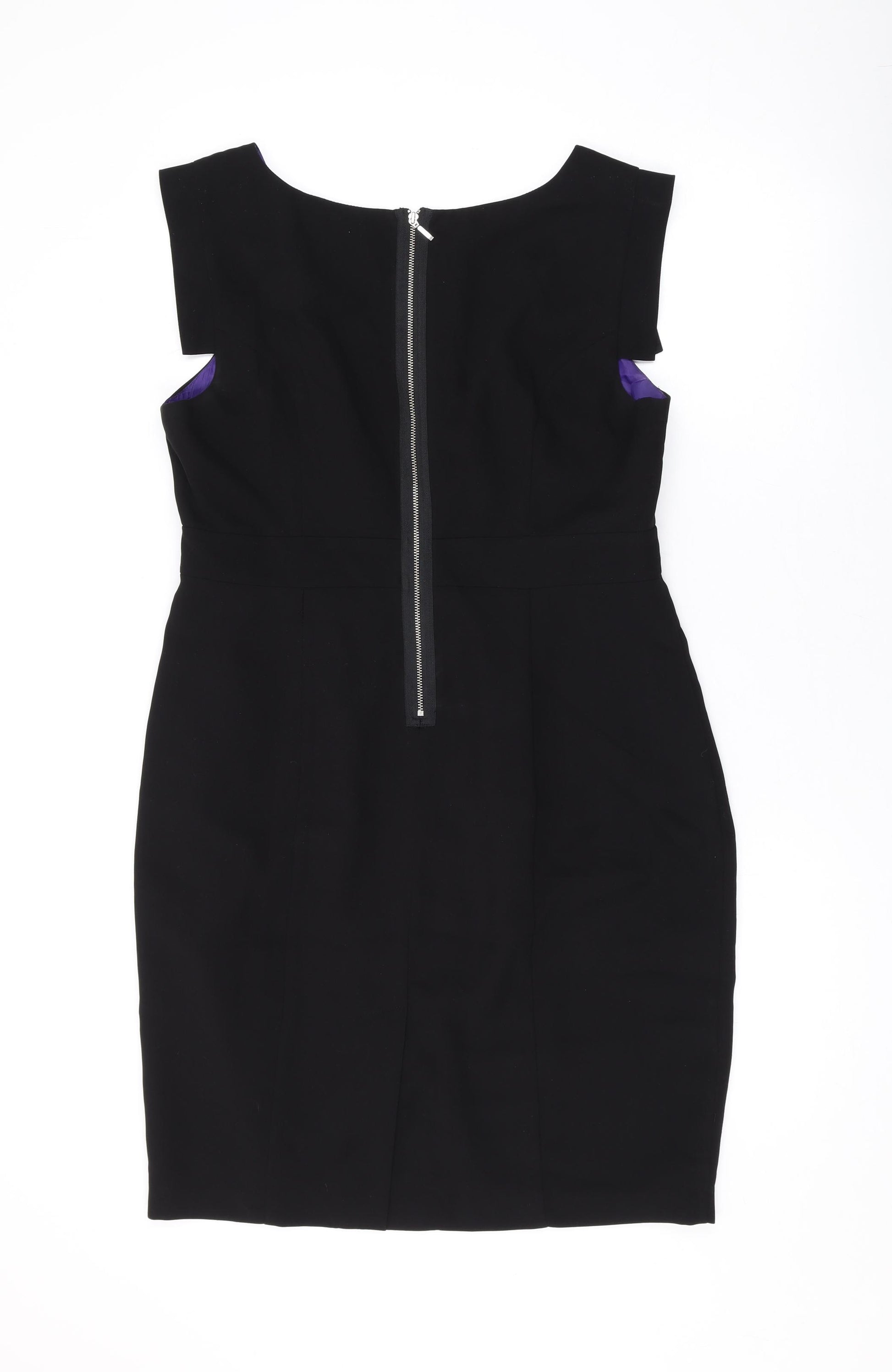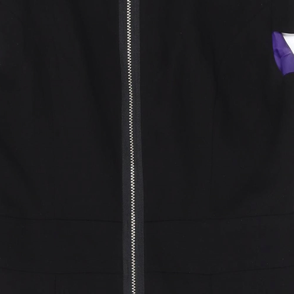 Womens Black Polyester A-Line Size 14 Boat Neck Zip