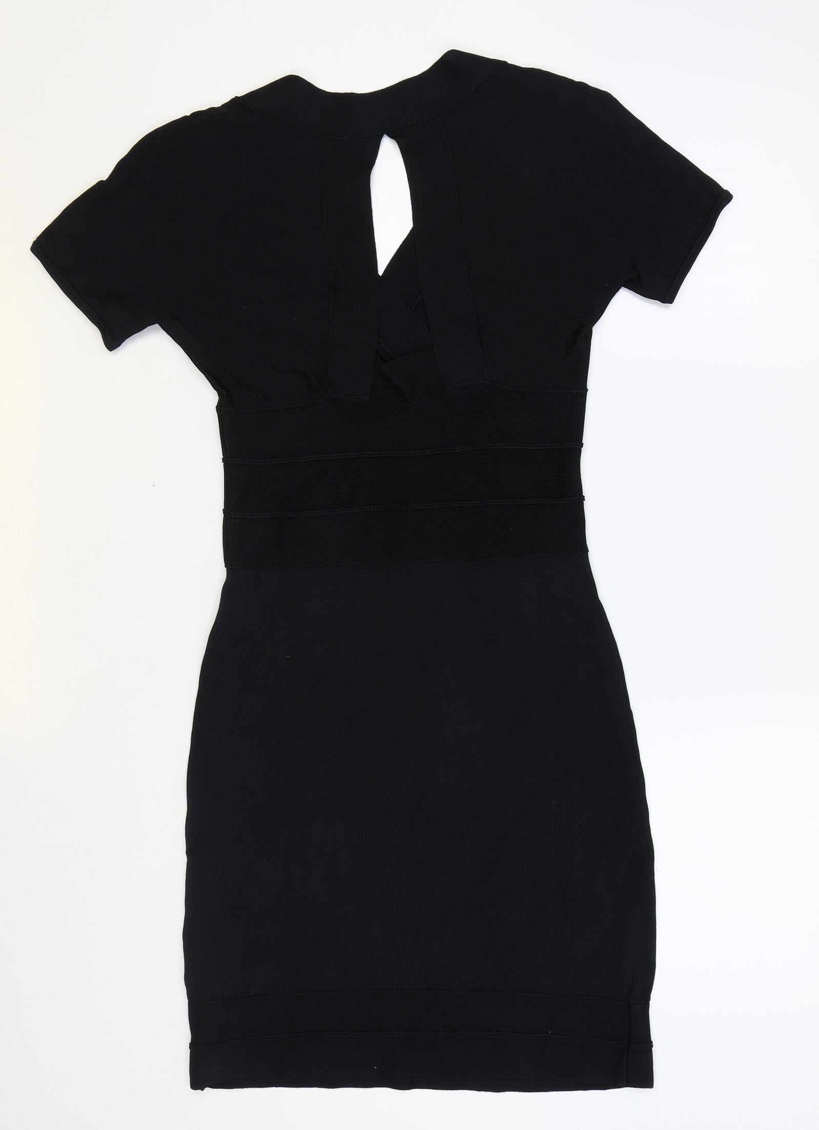 Womens Black Viscose Bodycon Size 8 V-Neck Pullover