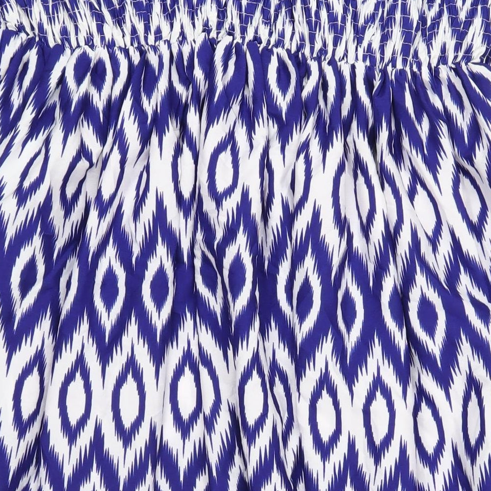 Womens Blue Geometric Polyester A-Line Size 16 Square Neck Pullover