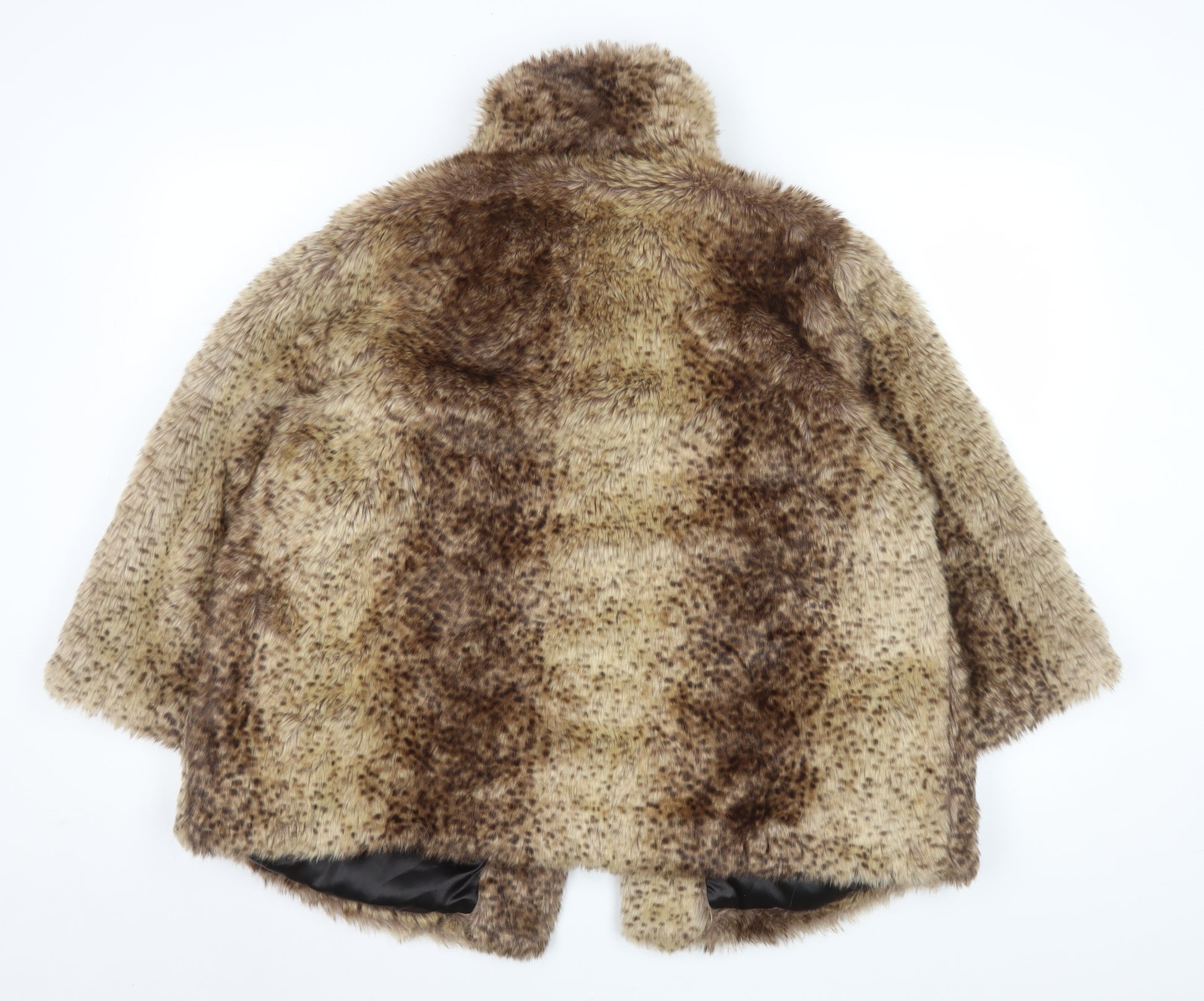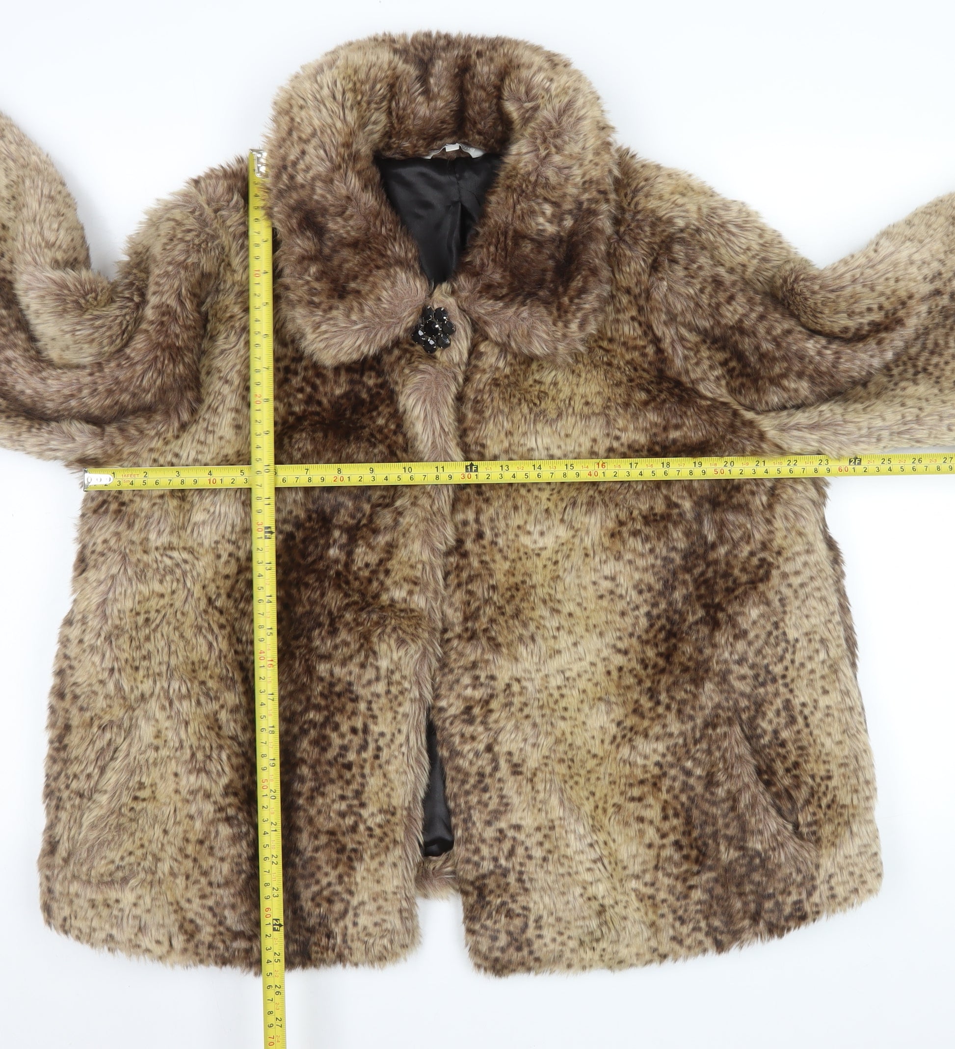 Women's Brown Faux Fur Overcoat Size 16 Lined Winter Coat