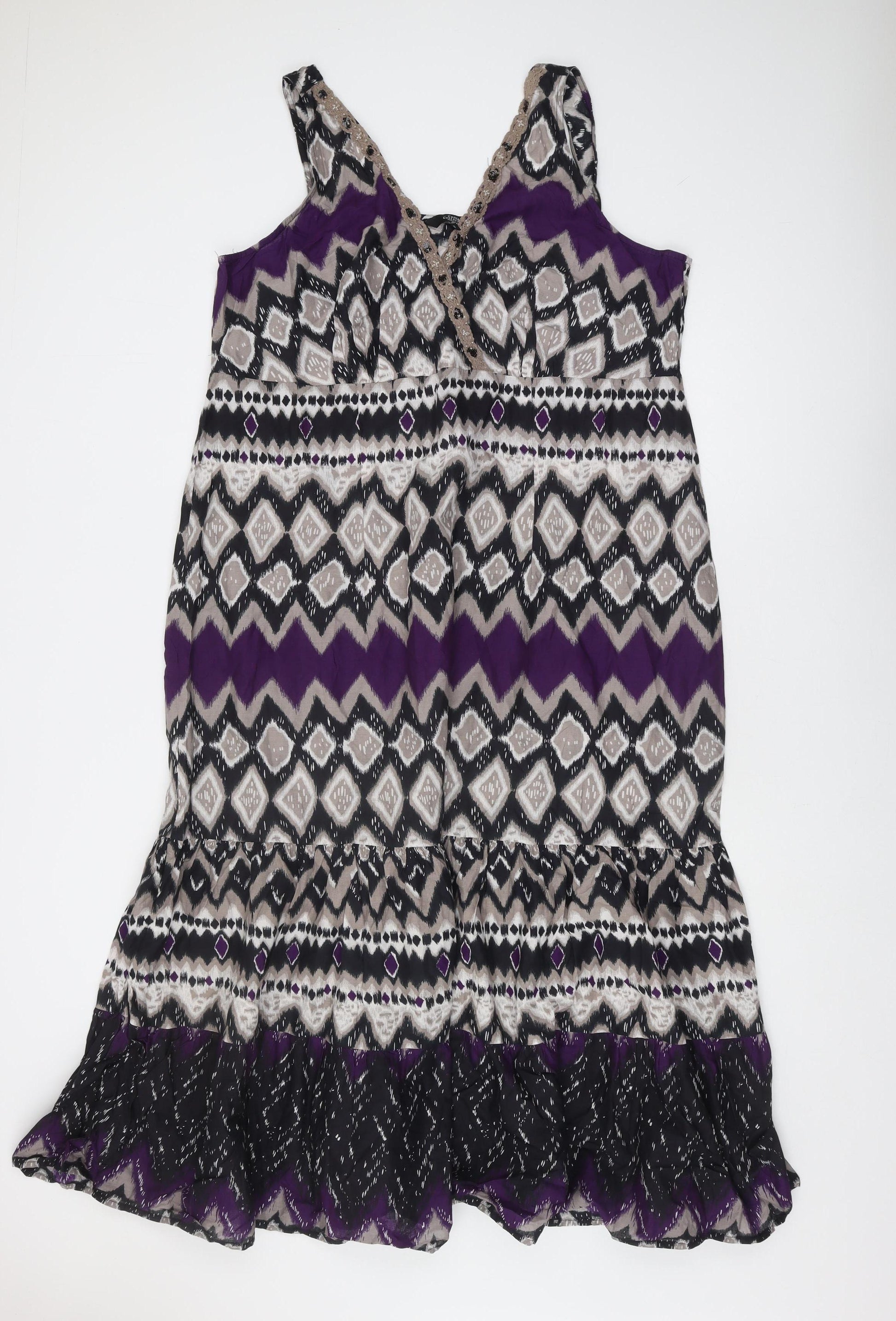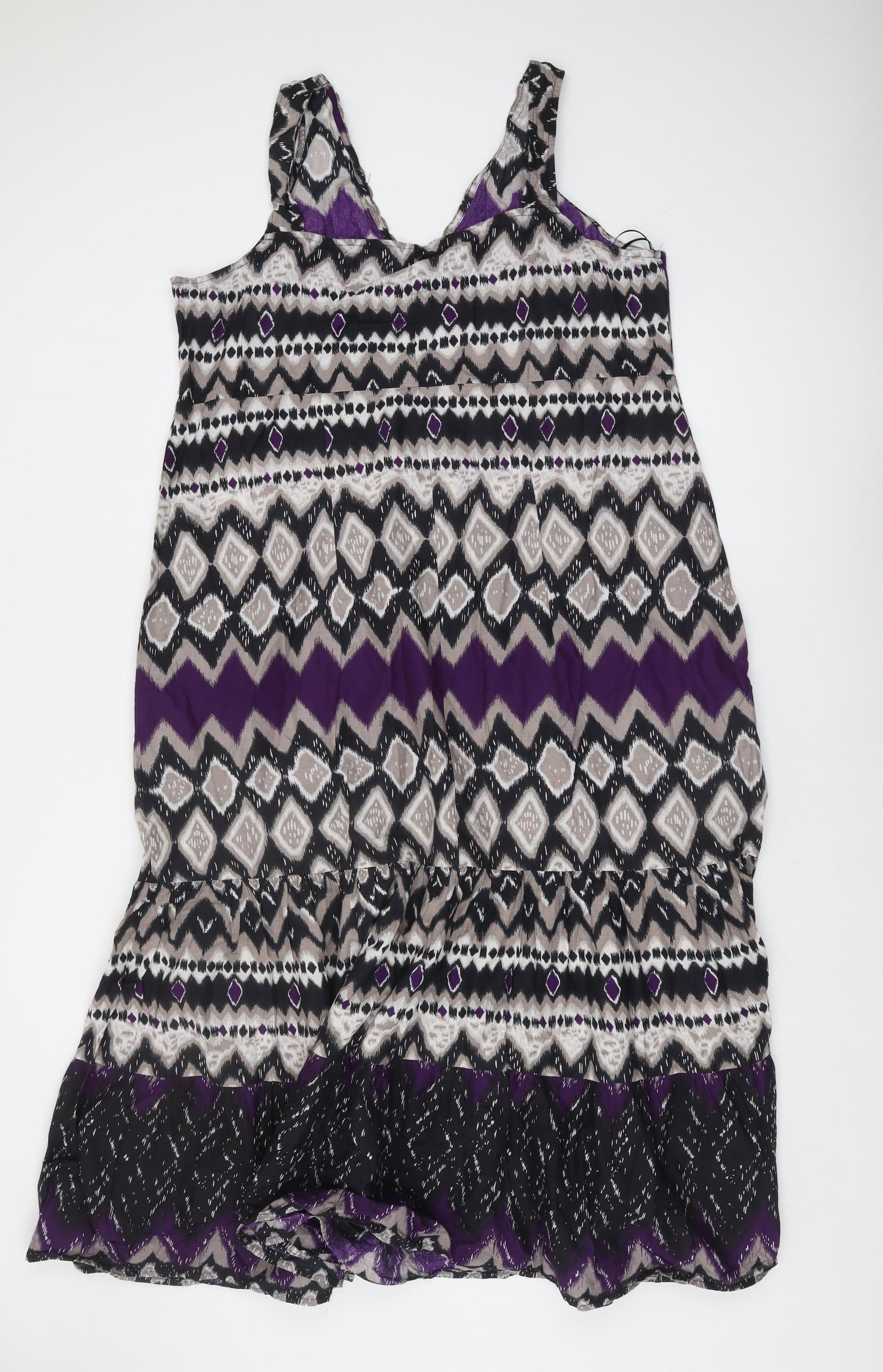 Elevate your casual wardrobe with this chic geometric print dress from Debenhams. This women's sleeveless dress in size 16 is crafted from 100% cotton, ensuring a breathable and comfortable fit. The multicoloured design features a vibrant blend of patterns, ideal for making a stylish statement. The dress showcases a flattering V-neckline, perfect for enhancing your neckline. Suitable for a range of casual occasions, this woven dress is both stylish and versatile. Easy to maintain, it is machine washable for added convenience. Whether you're heading out for a day with friends or a casual evening event, this dress will quickly become a favourite in your collection. The colourful theme adds a fun, playful touch, making it a perfect choice for standing out with confidence.
