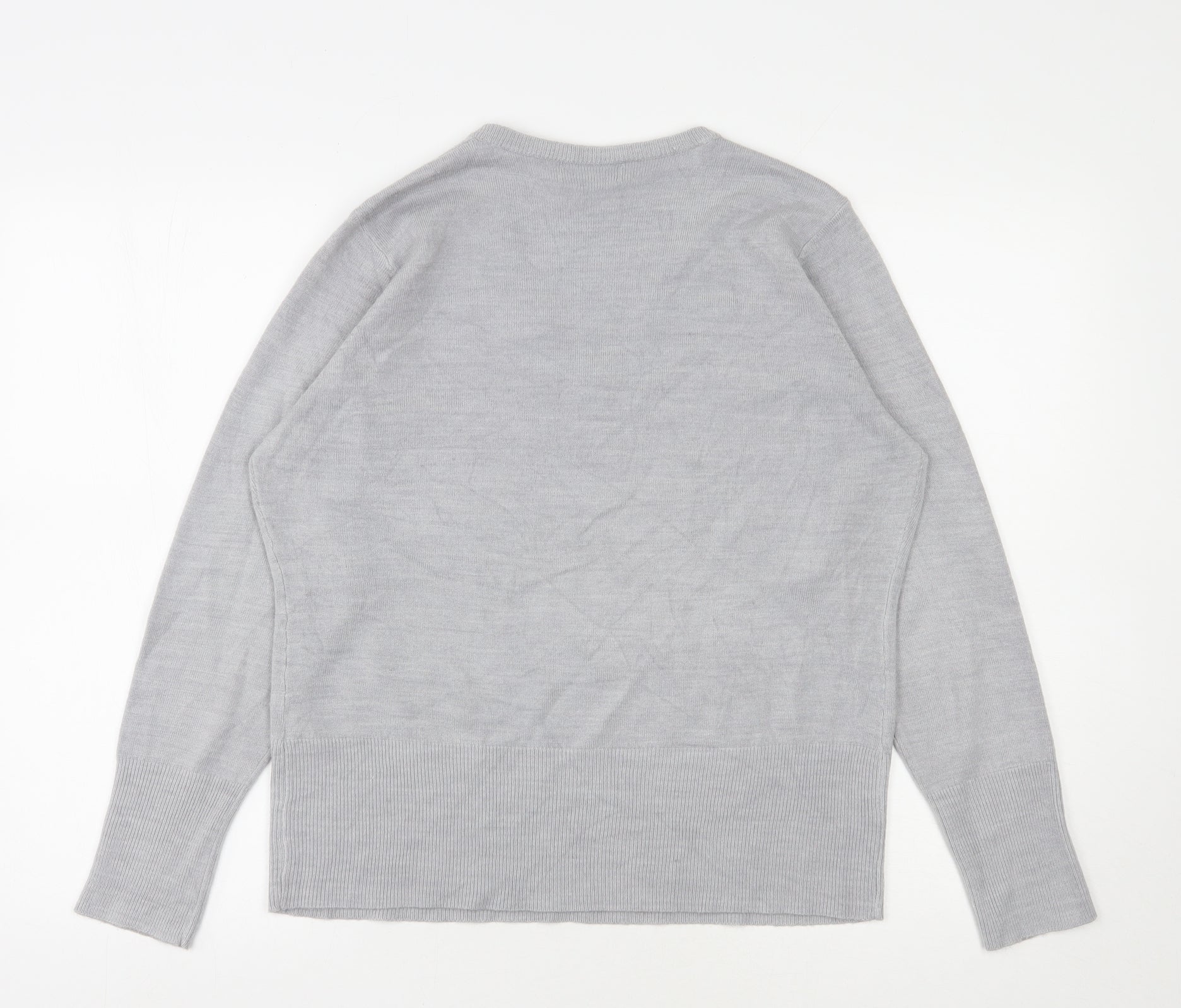 Womens Grey V-Neck Acrylic Pullover Jumper Size 16