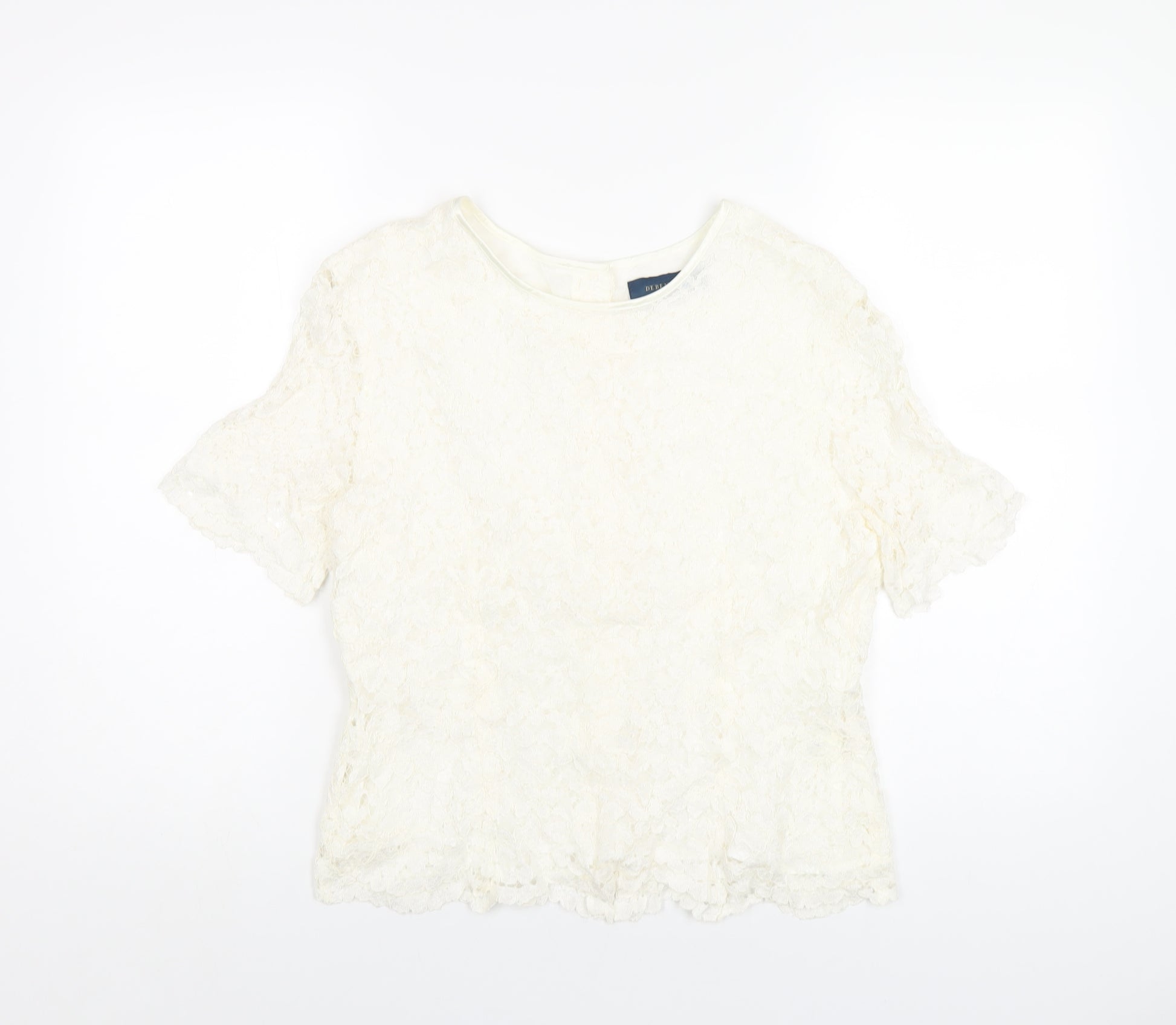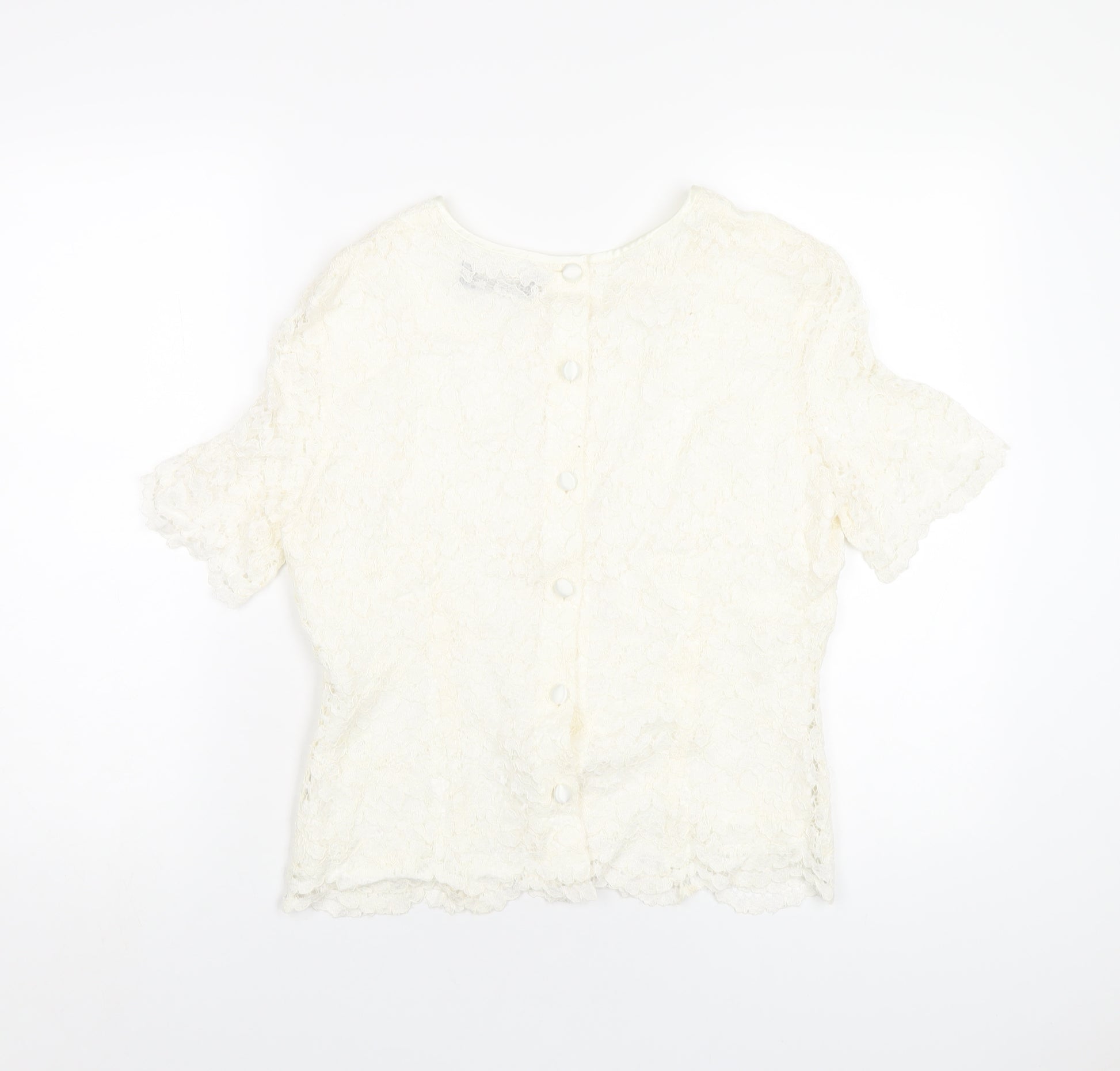 Womens Ivory Viscose Basic T-Shirt Size 14 Round Neck