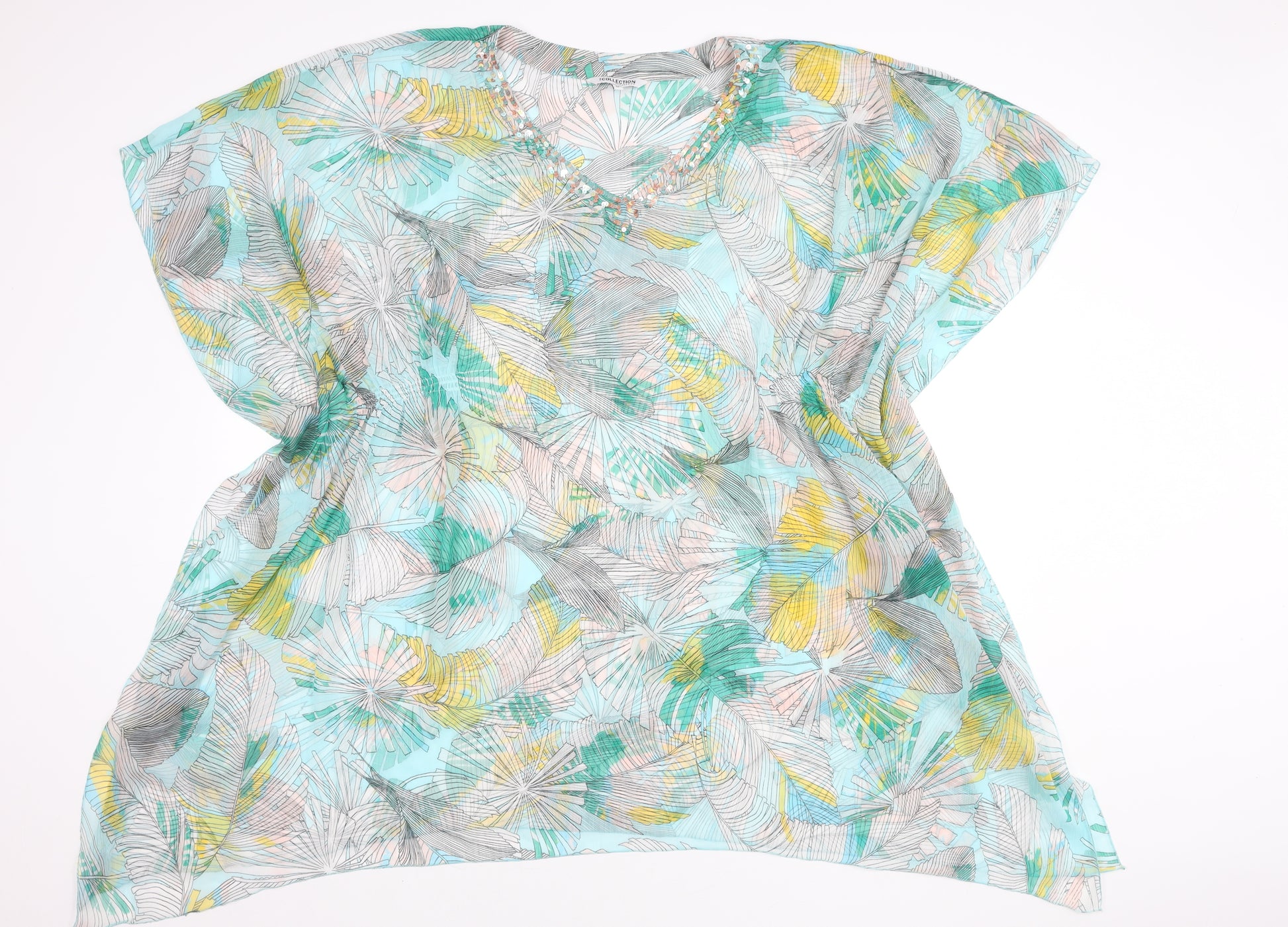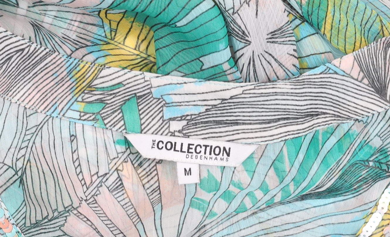 Bring a burst of tropical charm to your wardrobe with this stunning Debenhams Women's Beaded V-Neck Chiffon Tunic Blouse in size M. Designed with a relaxed fit, this lightweight and airy blouse is perfect for warm summer days, giving you comfort without compromising on style. The multicoloured floral print, featuring soft pastel tones of turquoise, yellow, pink, and green, creates a vibrant yet sophisticated look that's easy to dress up or down. Crafted from 100% polyester chiffon, the fabric drapes beautifully and allows for breathable wear, while the beaded neckline adds an elegant decorative touch, elevating this piece from simple everyday wear to something special.The blouse features a flattering V-neckline adorned with delicate bead accents that catch the light for a subtle shimmer, making it ideal for both daytime outings and evening gatherings. The kimono-style short sleeves offer ease of movement and a flowing silhouette, while the pullover design ensures effortless wear. This top pairs perfectly with jeans, cropped trousers, or a streamlined skirt, and can be layered over a camisole for added coverage if preferred.Whether you're heading to a summer barbecue, enjoying a beach holiday, or simply enjoying a casual day out, this tunic blouse embodies versatile elegance. The tropical floral pattern injects a fresh, seasonal vibe into your outfit, while the relaxed fit flatters various body shapes. Machine washable for easy care, this blouse also offers lasting quality, making it a valuable addition to your wardrobe.Perfect for women who appreciate stylish comfort, this Debenhams beaded tunic blouse is a must-have piece for the summer season. Don't miss the opportunity to bring both colour and elegance to your casualwear collection.