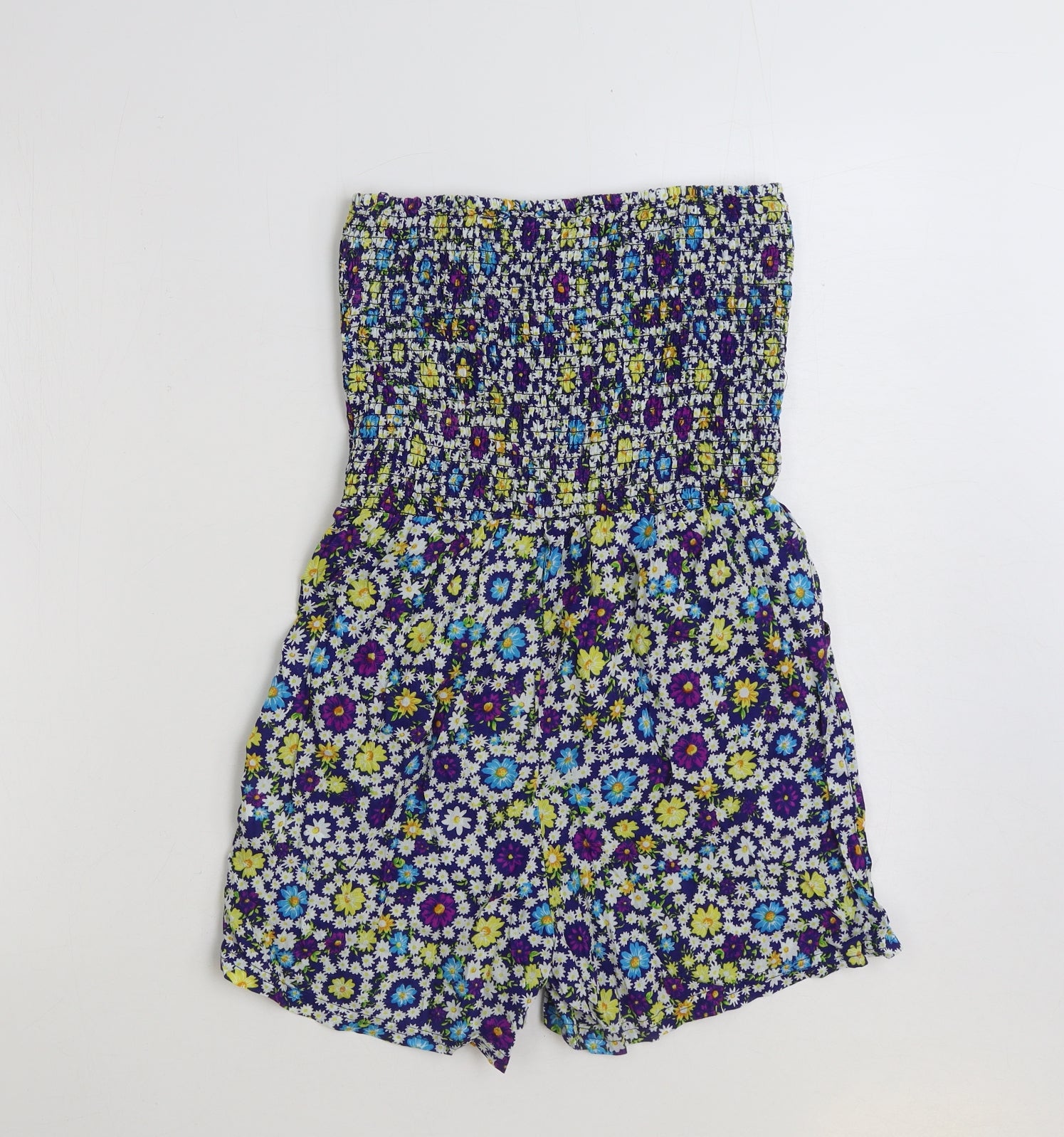 Womens Multicoloured Floral Polyester Playsuit One-Piece Size 10 Pullover